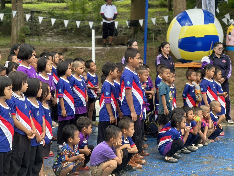 พล.ต.ท.รุ่งโรจน์ ฐากูรปุณยสิริ ผู้บัญชาการตำรวจตระเวนชายแดน พร้อมด้วย นางสาวภิม นครศรี หัวหน้างานส่วนกองทุนกีฬา ร่วมกันมอบสนามกีฬา และอุปกรณ์กีฬา พร้อมร่วมเล่นวอลเลย์บอลกับเด็กและคุณครู
