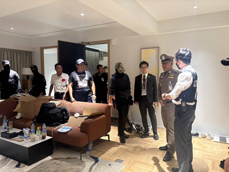 วันที่ 2 พฤศจิกายน 2568 เวลาประมาณ 00.30 น. พล.ต.อ.กิตติ์รัฐ พันธุ์เพ็ชร์ ผบ.ตร. สั่งการให้ พล.ต.อ.สำราญ นวลมา รอง ผบ.ตร., พล.ต.ท.สมประสงค์ เย็นท้วม ผู้ช่วย ผบ.ตร., พล.ต.ท.อาชยน ไกรทอง ผบช.ปส., พล.ต.ท.สยาม บุญสม ผบช.น., พล.ต.ต.ธีรเดช ธรรมสุธีร์ รอง ผบช.น., พล.ต.ต.โชติวัฒน์ เหลืองวิลัย ผบก.สส.บช.น., พล.ต.ต.วิทวัฒน์ ชินคํา ผบก.น.5, พล.ต.ต.นพสิทธิ์ มิตรภักดี ผบก.ปส.1, พ.ต.อ.วรพจน์ รุ่งกระจ่าง รอง ผบก.สส.บช.น., พ.ต.อ.ภพธรจิตต์หมั่น รอง ผบก.น.5, พ.ต.อ.วิริยะ โชติกวีผกก.ปพ.บช.ปส., พ.ต.อ.คณพศ ธนภูมิบุญญินผกก.1 บก.ปส.1, พ.ต.อ.ยิ่งยศ สุวรรณโณ ผกก.สน.ลุมพินี, พ.ต.อ. ศิรณวิชญ์ อินทรผกก.กก.สส.บก.น.5 นำกำลังเจ้าหน้าที่ตำรวจศอ.ปส.ตร., ศอ.ปส.บช.น. , บก.สส.บช.น., บก.น.5 และ บช.ปส. บุกประตูหลัง เปิดปฏิบัติการ “ทลายปาร์ตี้เหมืองทอง” จับกุมนายทวีพล อายุ 35 ปี ภูมิลำเนา แขวงอ่อนนุช เขตสวนหลวง จ.กรุงเทพฯ พร้อมแจ้งข้อหา “มีไว้ในความครอบครองซึ่งยาเสพติดให้โทษประเภท 1 (เมทแอมเฟตามีน,ยาบ้า,ยาไอซ์ และยาอี) โดยฝ่าฝืนต่อกฎหมาย , มีไว้ในความครอบครองซึ่งยาเสพติดให้โทษประเภท 2 (เคตามีน) เพื่อเสพโดยฝ่าฝืนต่อกฎหมาย , จำหน่ายหรือจัดหาสารระเหยให้แก่ผู้ซึ่งตนรู้หรือควรรู้ว่าเป็นผู้ติดสารระเหย และเสพยาเสพติดให้โทษประเภท 1 โดยฝ่าฝืนต่อกฎหมาย” และนายพงศกรณ์ อายุ 34 ปี ภูมิลำเนา ต.สำโรงเหนือ อ.เมือง จ.สมุทรปราการ