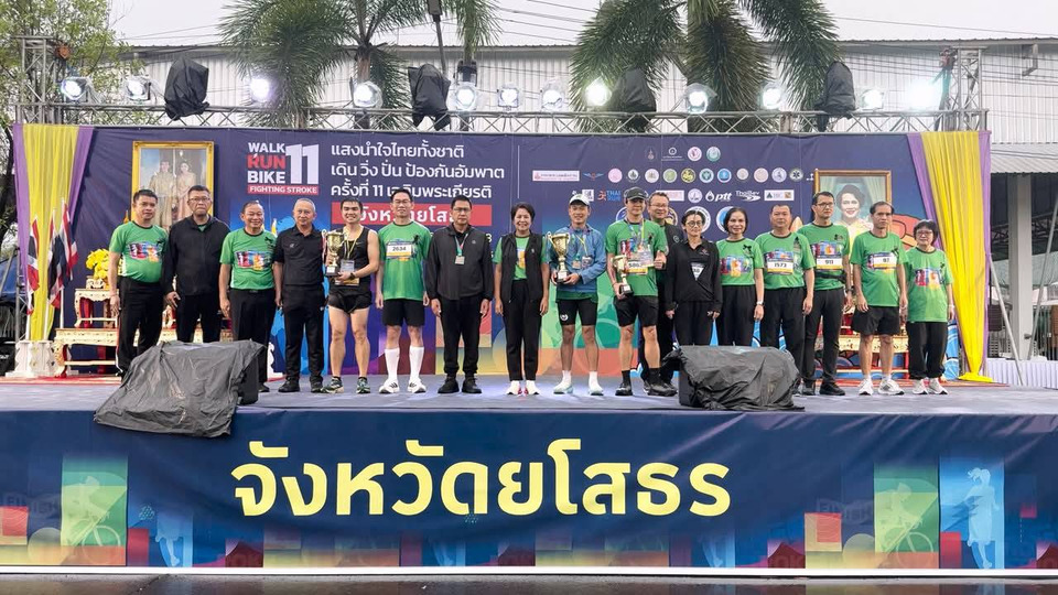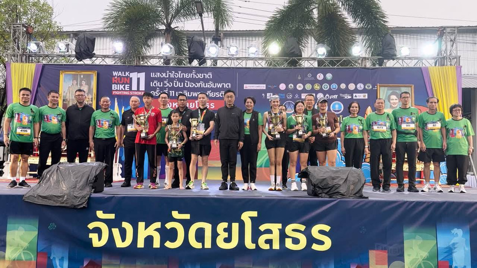 สำหรับกิจกรรมในปีนี้จัดขึ้นภายใต้แนวคิด ออกกำลังเป็นนิสัย ห่างไกลสโตรค เพื่อกระตุ้นเตือนถึงอันตรายของโรคหลอดเลือดสมอง (Stroke) ซึ่งเป็นสาเหตุการเสียชีวิตอันดับหนึ่งของประเทศไทย และมีแนวโน้มเพิ่มสูงขึ้นอย่างน่ากังวลในจังหวัดยโสธร โดยข้อมูลล่าสุดในปี 2568 พบว่ามีผู้ป่วยสะสมในจังหวัดสูงถึง 6,715 ราย จำนวนนี้เป็นผู้ป่วยรายใหม่ 1,837 รายและมีผู้เสียชีวิตแล้ว 80 ราย ซึ่งตัวเลขดังกล่าวสะท้อนให้เห็นว่าโรคหลอดเลือดสมองไม่ใช่เรื่องไกลตัวอีกต่อไป แต่เป็นภัยเงียบที่ต้องรับมืออย่างจริงจัง