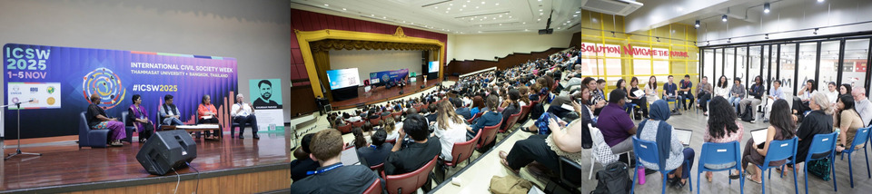 งาน “ICSW & APSF 2025” จัดขึ้นระหว่างวันที่ 1–5 พฤศจิกายน 2568 ณ มหาวิทยาลัยธรรมศาสตร์ ท่าพระจันทร์ นับเป็นการเฉลิมฉลองปฏิบัติการพลเมือง เพื่อ ประชาธิปไตย และการยอมรับคุณค่าที่แตกต่าง : โลกใหม่ที่เป็นจริงได้