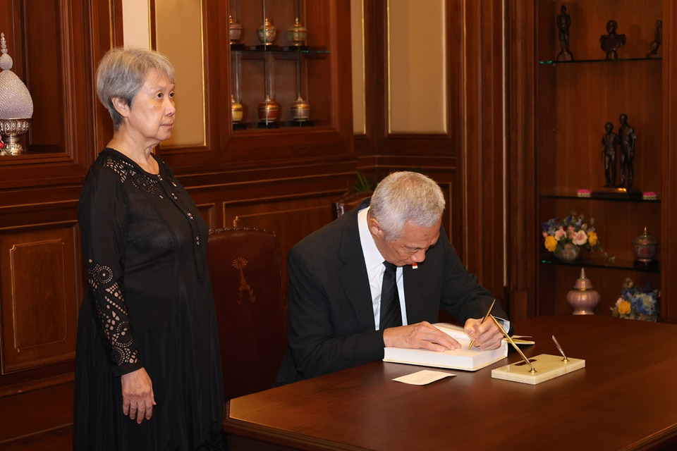 วันที่ 3 พ.ย.68 เมื่อเวลา 15.30 น. นาย ลี เซียนลุง รัฐมนตรีอาวุโสสาธารณรัฐสิงคโปร์ และอดีตนายกรัฐมนตรี วางพวงมาลา ถวายสักการะหน้าพระโกศพระบรมศพ สมเด็จพระนางเจ้าสิริกิติ์ พระบรมราชินีนาถ พระบรมราชชนนีพันปีหลวง ณ พระที่นั่งดุสิตมหาปราสาท พระบรมมหาราชวัง พร้อมทั้งลงนามแสดงความอาลัย ณ อาคารหน่วยราชการในพระองค์ 904