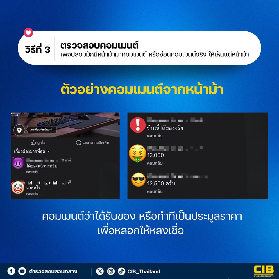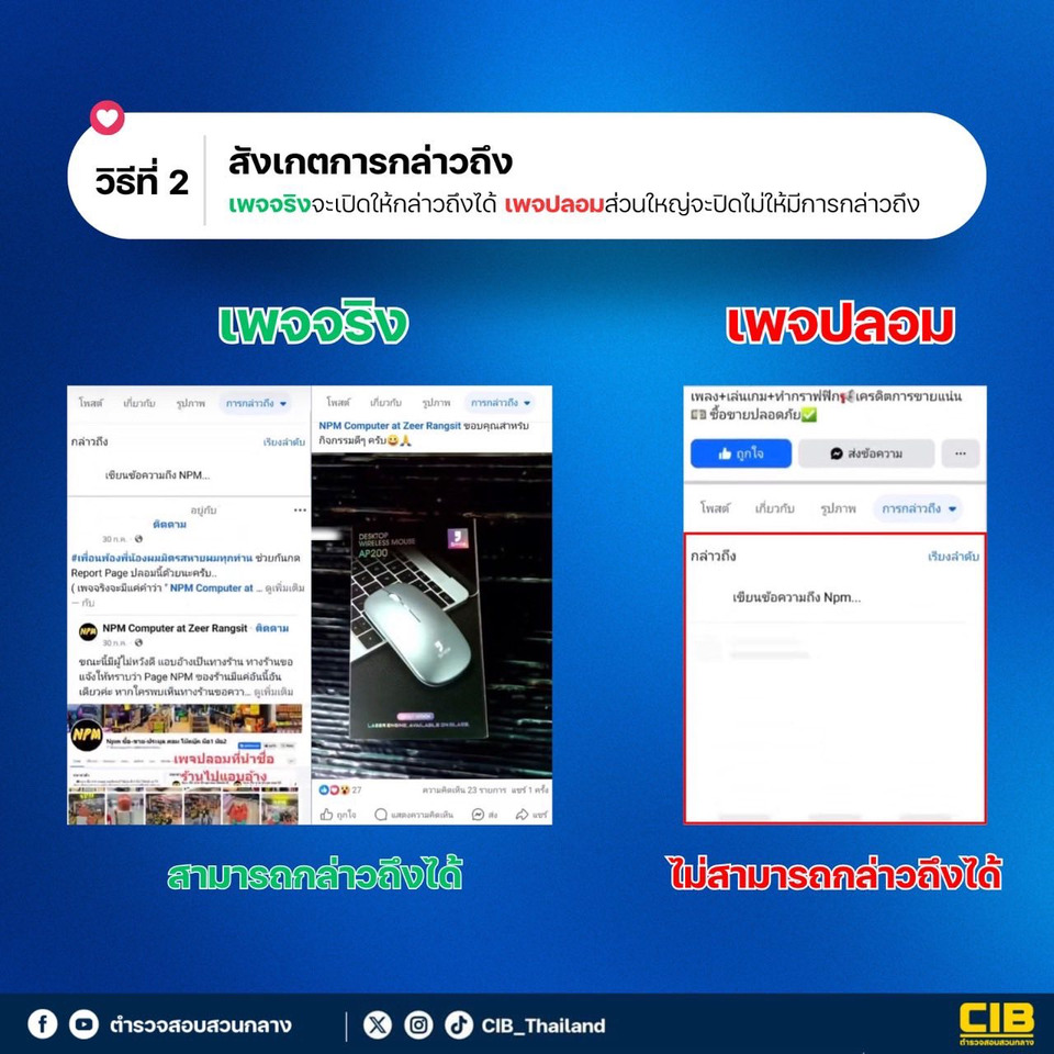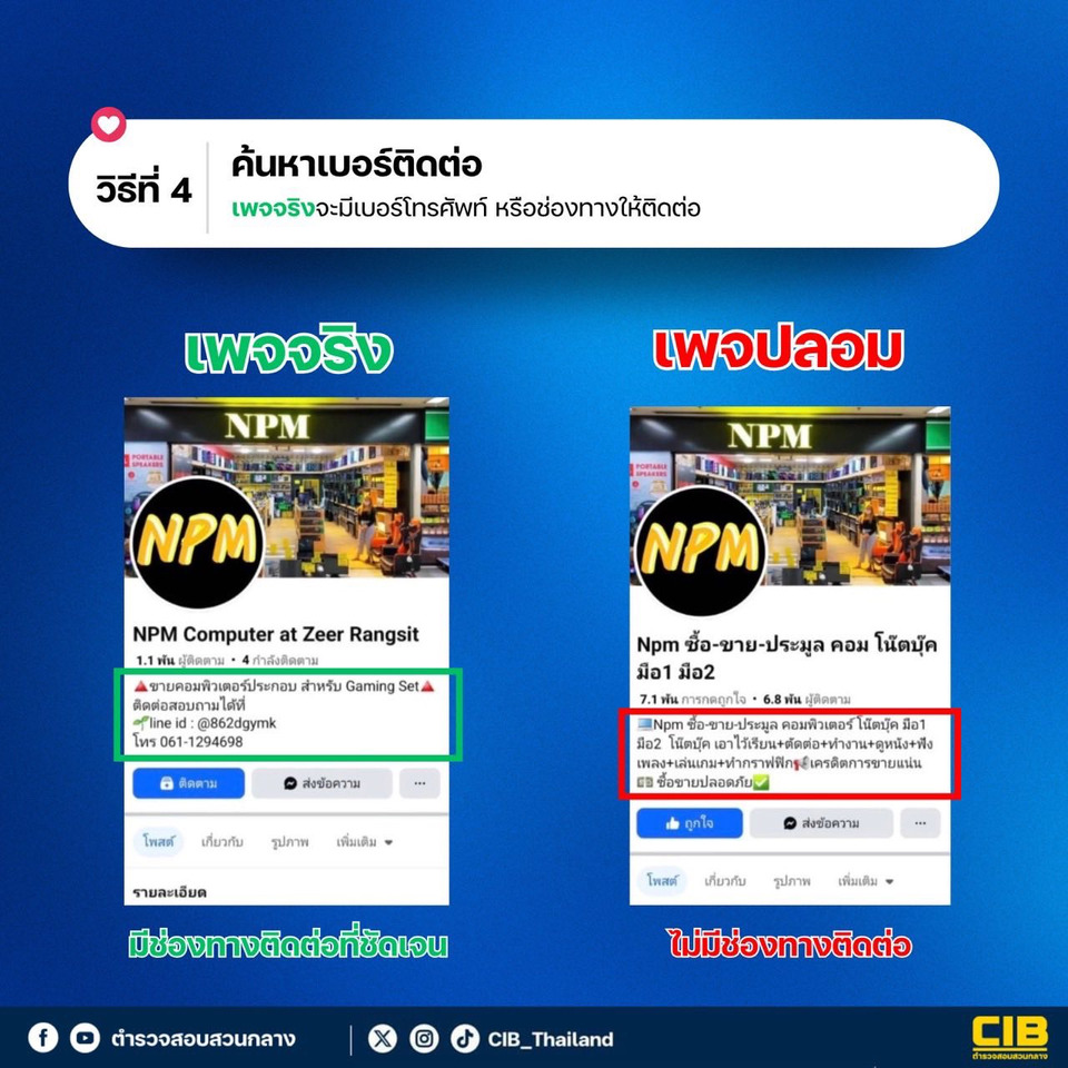 ตำรวจสอบสวนกลาง (CIB) มี 4 วิธีง่าย ๆ ในการสังเกตเพจปลอม เพื่อมิให้ตกเป็นเหยื่อจากการซื้อของออนไลน์