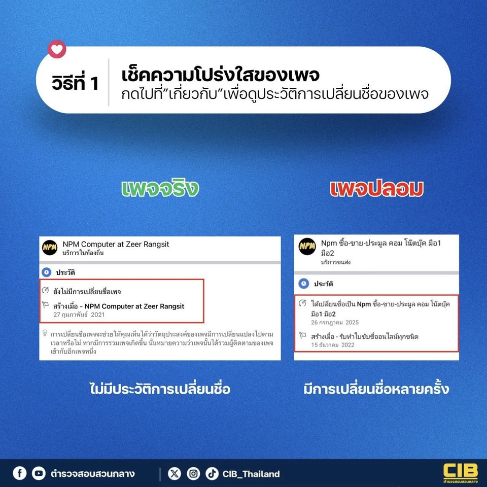 #เพจปลอม #เตือนภัยออนไลน์ #สื่อของออนไลน์ #ตำรวจสอบสวนกลาง #CIB