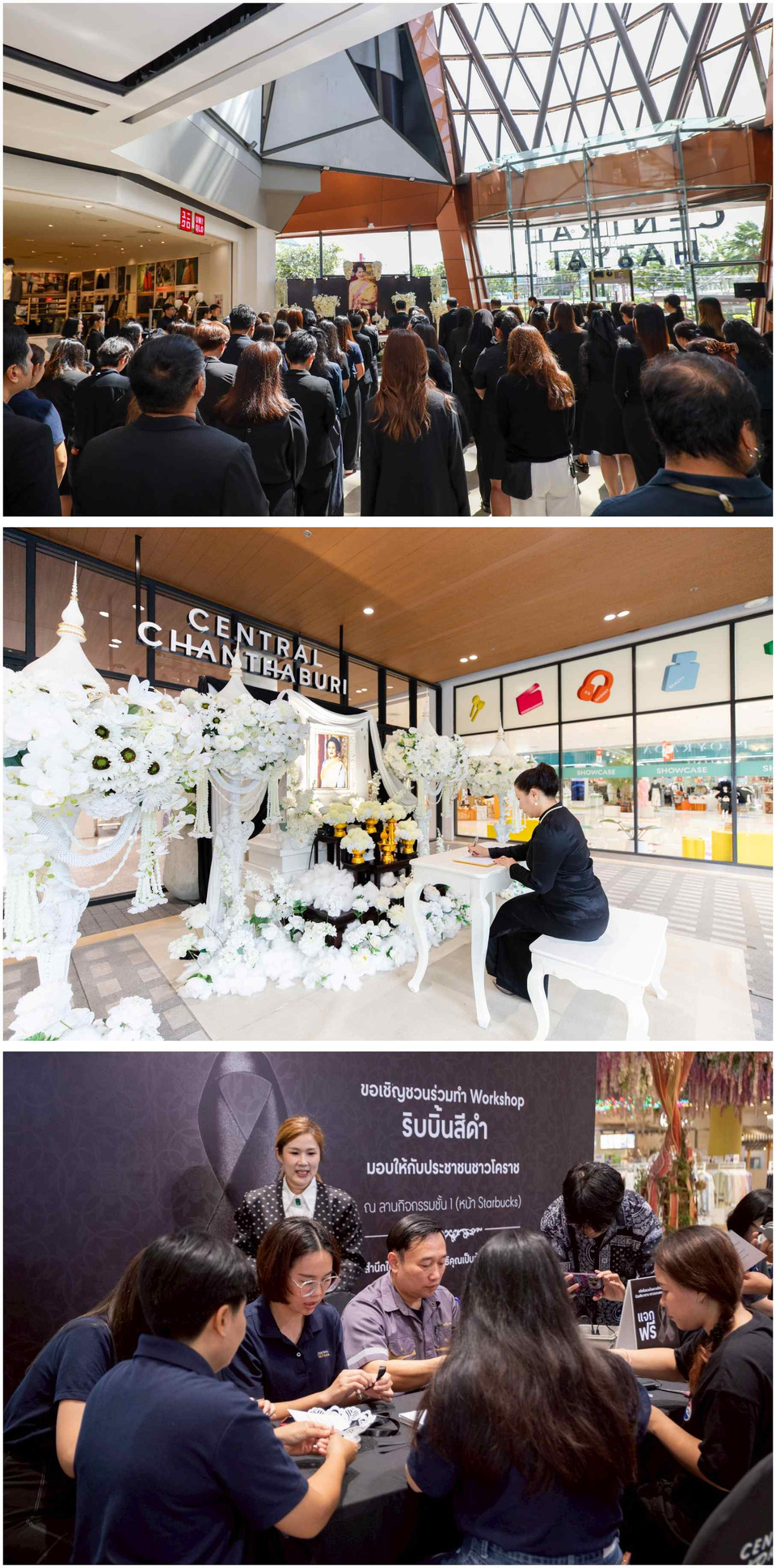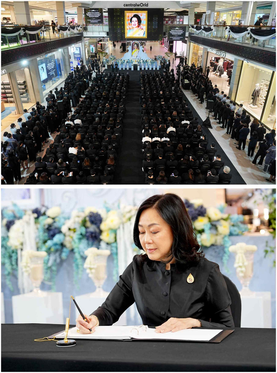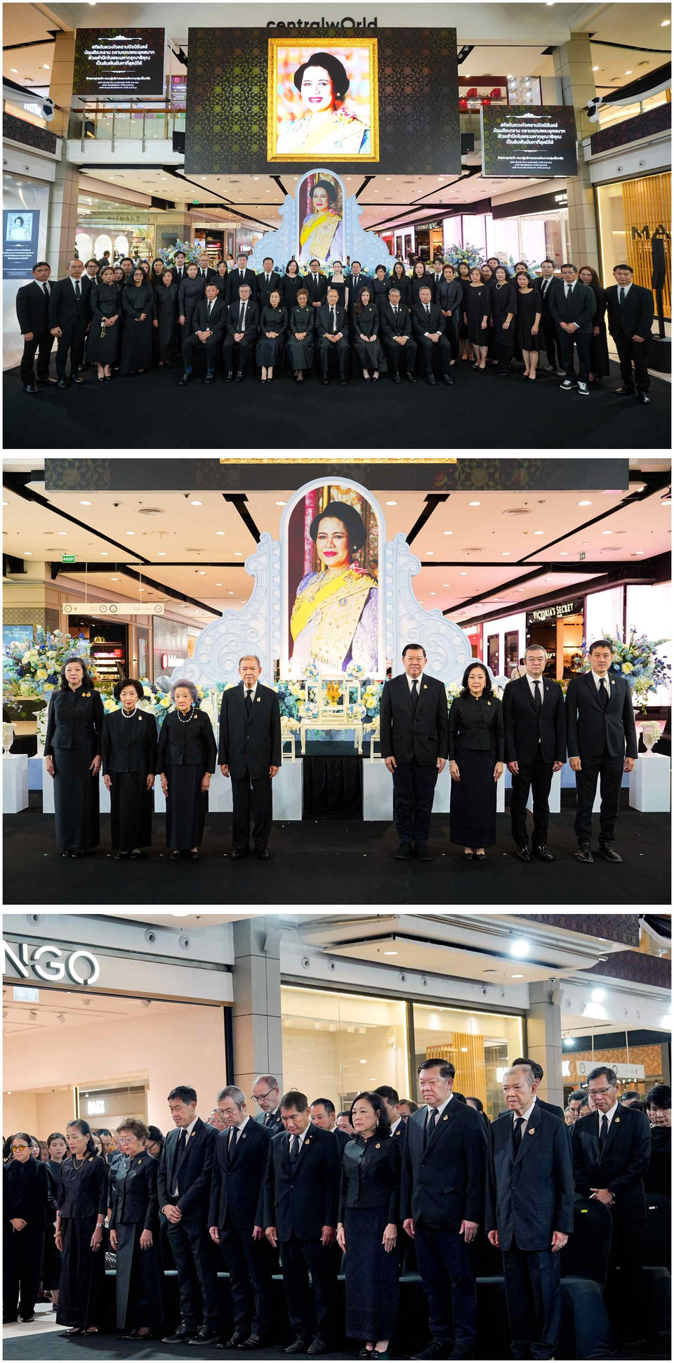 คณะผู้บริหารและพนักงาน บริษัท เซ็นทรัลพัฒนา จำกัด (มหาชน) ผู้บริหารศูนย์การค้า โครงการที่พักอาศัย อาคารสำนักงาน และโรงแรมทั่วประเทศ ร่วมกับคณะผู้บริหารและพนักงาน กลุ่มเซ็นทรัล น้อมเกล้าน้อมกระหม่อม ถวายความจงรักภักดี และถวายสักการะหน้าพระฉายาลักษณ์ สมเด็จพระนางเจ้าสิริกิติ์ พระบรมราชินีนาถ พระบรมราชชนนีพันปีหลวง เพื่อร่วมแสดงความอาลัยอย่างพร้อมเพรียง และรำลึกในพระมหากรุณาธิคุณอันหาที่สุดมิได้ ที่โซนอีเดน ชั้น 1 เซ็นทรัลเวิลด์