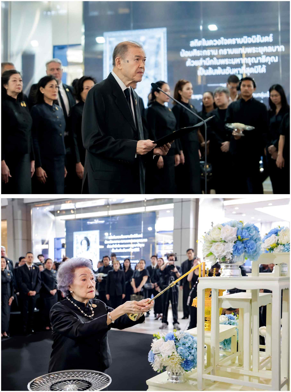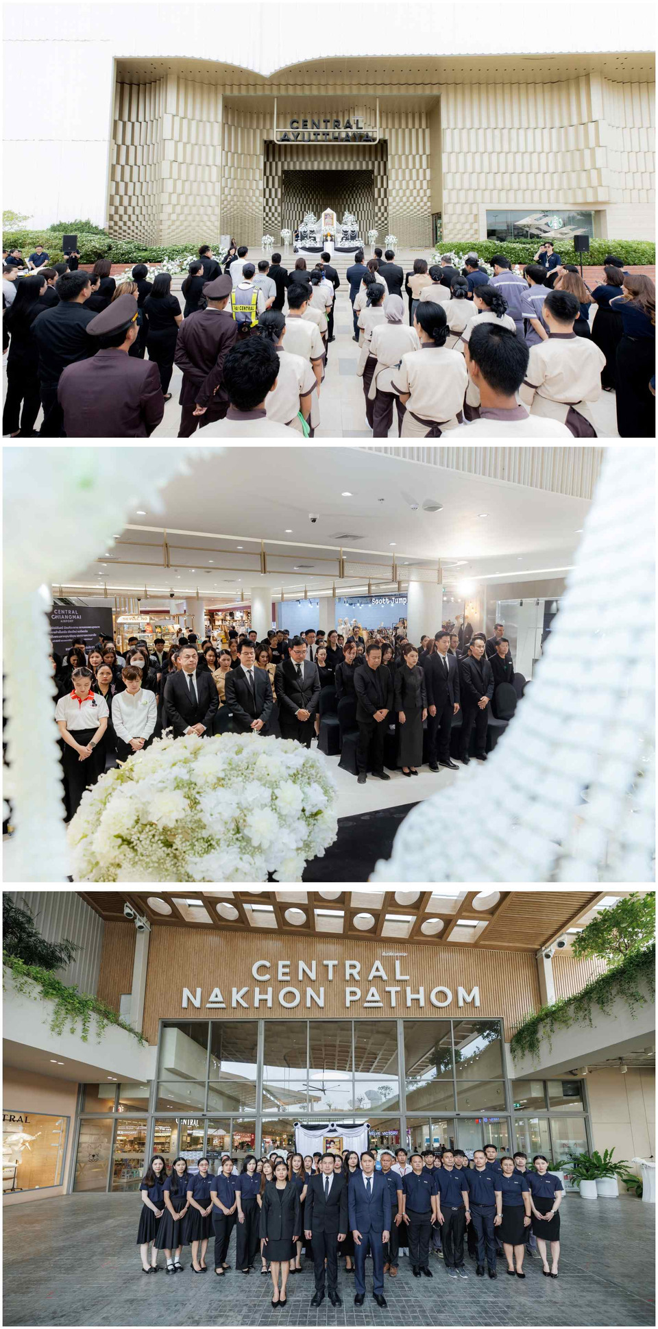 พิธีถวายความอาลัย นำโดย คุณมุกดา จิราธิวัฒน์ ประธานในพิธี พร้อมด้วย ดร.ศุภชัย พานิชภักดิ์, คุณพิชัย จิราธิวัฒน์ และ คุณวัลยา จิราธิวัฒน์ พร้อมคณะผู้บริหาร, พนักงานกลุ่มเซ็นทรัล ร่วมยืนสงบนิ่ง 93 วินาที จากนั้นประธานในพิธีและคณะผู้บริหารได้วางพวงมาลัยถวายความอาลัย ตามด้วยพนักงานกลุ่มเซ็นทรัลจากทุกหน่วยงานร่วมวางดอกมะลิ บริเวณเบื้องหน้าพระฉายาลักษณ์ด้วยความสำนึกในพระมหากรุณาธิคุณอันหาที่สุดมิได้