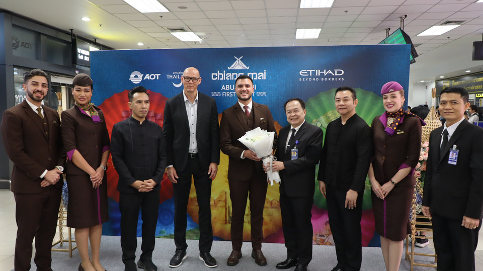 พร้อมทั้งมอบของที่ระลึกเป็นกางเกงช้างล้านนา และพวงกุญแจรูปช้าง ให้แก่นักท่องเที่ยวที่เดินทางมาถึง สร้างความประทับใจและเป็นการส่งเสริมเอกลักษณ์ท้องถิ่นล้านนา Etihad Airways เป็นสายการบินประจำชาติสหรัฐอาหรับเอมิเรตส์ (UAE) ซึ่งให้บริการเส้นทางบินระหว่างประเทศกว่า 70 จุดหมายทั่วโลก เปิดให้บริการเที่ยวบินตรงเส้นทางใหม่ “อาบูดาบี–เชียงใหม่” จำนวน 4 เที่ยวบินต่อสัปดาห์ นับเป็นอีกก้าวสำคัญในการเชื่อมต่อภูมิภาคตะวันออกกลางและยุโรปเข้ากับภาคเหนือของไทยโดยตรง ช่วยเสริมศักยภาพด้านการคมนาคมทางอากาศ และดึงดูดนักท่องเที่ยวคุณภาพเข้าสู่จังหวัดเชียงใหม่และจังหวัดใกล้เคียง การเปิดให้บริการของเส้นทางการบินใหม่ในช่วงตารางบินฤดูหนาวครั้งนี้ ยังตอกย้ำถึงความพร้อมของท่าอากาศยานเชียงใหม่ (ทชม.) ในการรองรับปริมาณเที่ยวบินที่ขยายตัวอย่างต่อเนื่อง ทั้งเส้นทางภายในประเทศและระหว่างประเทศ