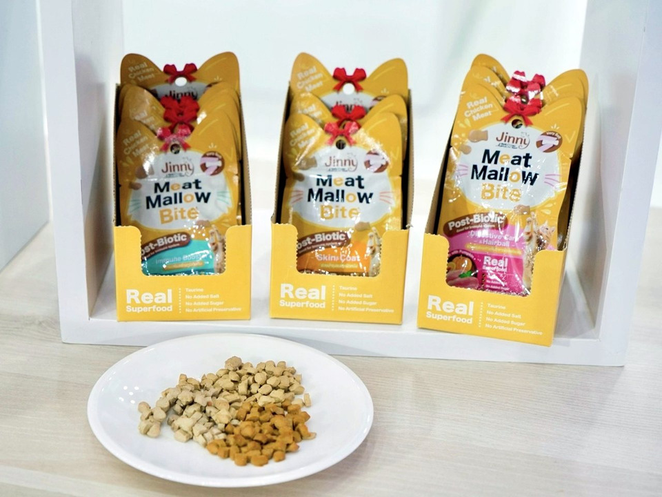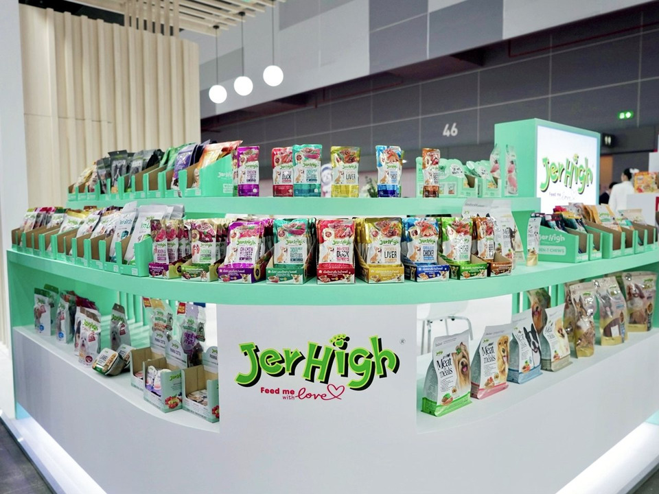 ไฮไลท์ผลิตภัณฑ์ใหม่ที่นำมาจัดแสดง ได้แก่ ‘เจอร์ไฮ ไทย เทสต์’ (JerHigh Thai Taste) ภายใต้แนวคิด “กลิ่นหอม รสชาติไทยแท้ สุนัขชอบ คนจำได้” สะท้อนเอกลักษณ์ความเป็นไทย มุ่งเจาะตลาดพรีเมียมในเอเชียและตะวันออกกลาง เตรียมเปิดตัวเชิงพาณิชย์ในไตรมาส 1 ปี 2569 และ ‘จินนี่ นูริช’ (Jinny Nourish) อาหารแมวเปียกเกรดซูเปอร์พรีเมียมแบบซองพัฒนาสูตรเฉพาะสำหรับแต่ละช่วงวัยของแมว โดยใช้ส่วนผสมจากปลาทูน่าธรรมชาติและเนื้อไก่สดคุณภาพสูง ปราศจากกลูเตนและข้าวสาลี ตอบสนองเทรนด์ “Functional Nutrition” โภชนาการเพื่อการดูแลสุขภาพเฉพาะด้านที่เติบโตอย่างรวดเร็วในตลาดโลก