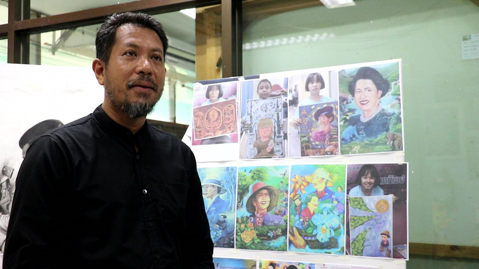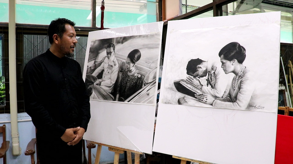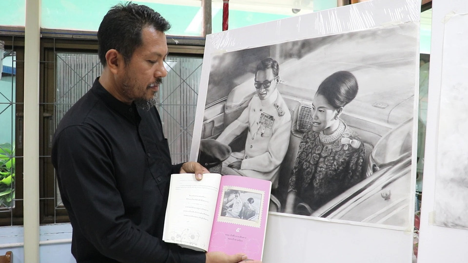 ครูสอนศิลปะ ชุมพร ถ่ายทอดความรู้สึกที่มีความจงรักภัคดีต่อสถาบันพระมหากษัตริย์ผ่านงานศิลปะจากปลายดินสอ การครองชีวิตคู่ของสองพระองค์ “สมเด็จพระนางเจ้าสิริกิติ์ พระบรมราชินีนาถ พระบรมราชชนนีพระพันปีหลวง” ที่มีต่อ “พระบาทสมเด็จพระปรมินทรมหาภูมิพล อดุลยเดชมหาราช บรมนาถบพิตร” โดยจะเคียงคู่อยู่ไม่ห่างในการออกพระกรณียกิจ โครงการต่างๆจึงมองว่าพสกนิกรประชาชนคนไทยควรมองเป็นแบบอย่างอีกอริยบทหนึ่งของสมเด็จพระพันปีหลวง อีกทั้งผลงานพระบรมสาทิสลักษณ์เคยลงพิมพ์ในหนังสือ “เรื่องสั้นเฉลิมพระเกียรติ พระบาทสมเด็จพระเจ้าอยู่หัว ชุด แสงธรรมแห่งศรัทธา และวางจำหน่ายตามร้านหนังสือชั้นนำทั่วประเทศเมื่อกว่า 10 ปีก่อนด้วย
