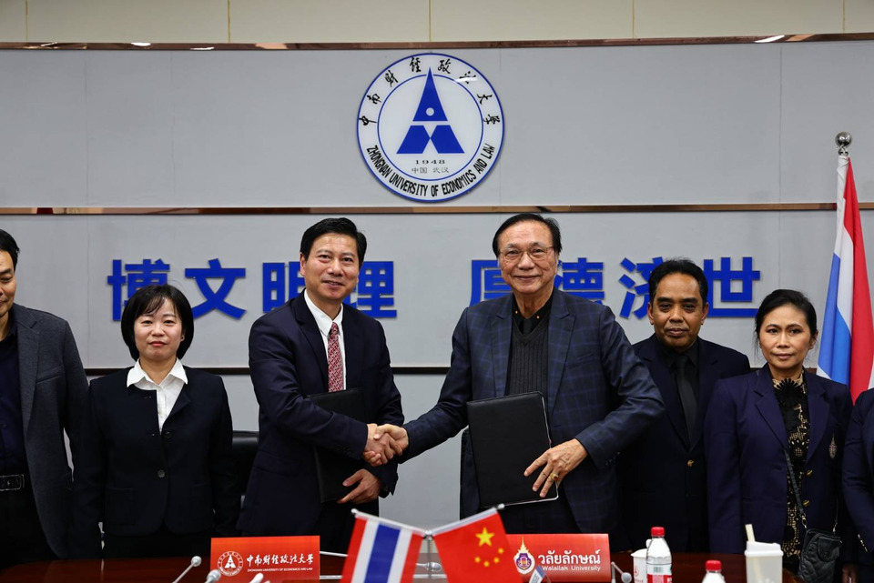 มหาวิทยาลัยวลัยลักษณ์ ตอกย้ำวิสัยทัศน์สู่การเป็นมหาวิทยาลัยชั้นนำระดับโลก เดินหน้าขยายความร่วมมือทางวิชาการกับสถาบันการศึกษานานาชาติ ล่าสุดได้มีการลงนามบันทึกข้อตกลงความร่วมมือ (MoA) กับ Zhongnan University of Economics and Law (ZUEL) สาธารณรัฐประชาชนจีน เพื่อเปิดหลักสูตร Chinese Language Double Degree Program พร้อมขยายโอกาสให้นักศึกษาได้ฝึกประสบการณ์สหกิจศึกษาในสถานประกอบการชั้นนำของจีน