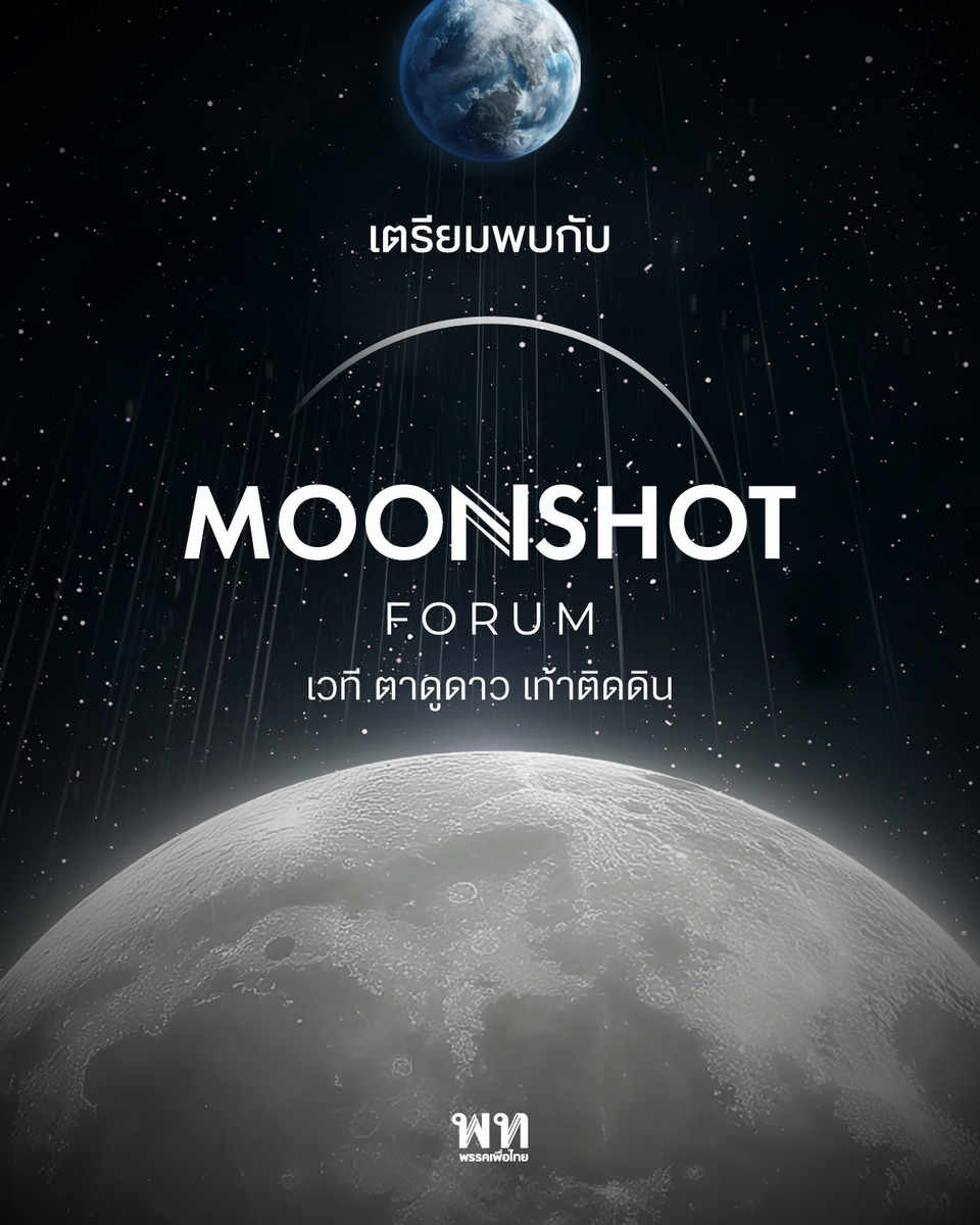 MOONSHOT FORUM เวทีตาดูดาว เท้าติดดิน คือการฝันต่อถึงอนาคตที่ดีที่ไม่ใช่เรื่องเพ้อฝัน และการสร้างความหวังให้คนไทย จำเป็นต้องคิดให้ไกลกว่าปัจจุบัน เพื่อนำโอกาสและความเป็นอยู่ที่ดีมาสู่พี่น้องประชาชน