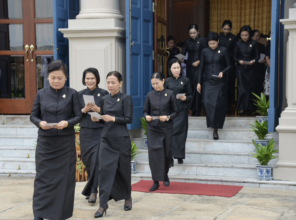เสร็จแล้ว เมื่อลงจากพระที่นั่งดุสิตมหาปราสาท จะเดินออกทางกำแพงแก้วฝั่งทิศตะวันตก เดินออกประตูเทวาภิรมย์ ข้ามไปยังท่าราชวรดิษฐ์ โดยมีจะเจ้าหน้าที่จิตอาสาและเจ้าหน้าที่ตำรวจจัดรถรางไฟฟ้าให้บริการกลับไปส่งที่สนามหลวง