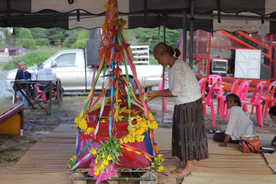 “บ้านดงน้อย เป็นชุมชนเล็ก ๆ ริมเขื่อนลำปาว อาชีพหลักคือการทำการประมงพื้นบ้าน หาปลา กุ้ง หอย ในเขื่อนมาจำหน่ายทั้งแบบสด และการแปรรูป เป็นรายได้หลัก คนในชุมชนจะมีความเชื่อศรัทธา ปู่เชียงแสน ดอนเมืองจันทร์ ที่เชื่อว่าเป็นทั้งบุคคลสำคัญและสิ่งศักดิ์สิทธิ์ที่จะปกป้องคุ้มครองลูกหลานในชุมชนให้แคล้วคลาดปลอดภัย รวมถึงการหาปลา ที่จะสร้างรายได้ให้กับลูกหลานในชุมชน การลอยประทีปไหลเรือไฟ จะเป็นทั้งพิธีความเชื่อในการสักการะปู่เชียงแสนฯ และยังเป็นการขอขมาพระแม่คงคาด้วย” นายศิขรินทร์ฯ กล่าว