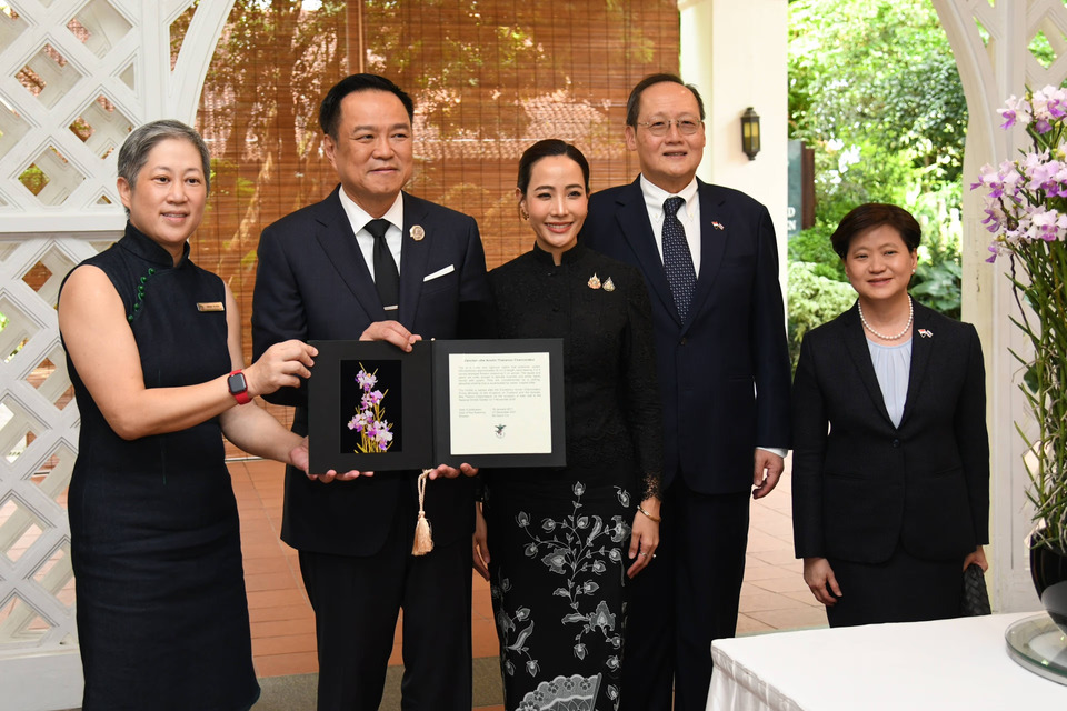 จากนั้นเวลา 10.40 น. นายอนุทินเดินทางไปยังสวนพฤกษศาสตร์สิงคโปร์ (Singapore Botanic Gardens) เพื่อเข้าร่วมพิธีตั้งชื่อกล้วยไม้ (VIP Orchid Naming) ซึ่งจัดขึ้นเพื่อเป็นเกียรติแก่นายกฯและภริยา ในโอกาสการเยือนสาธารณรัฐสิงคโปร์อย่างเป็นทางการ โดยรัฐบาลสิงคโปร์ได้ตั้งชื่อกล้วยไม้สายพันธุ์ใหม่ว่า “Vanchoanthe Anutin Thananon Charnvirakul” โดยเป็นกล้วยไม้ลูกผสมที่มีความแข็งแรงและเติบโตดี มีช่อดอกตั้งยาวประมาณ 30 ซม. แต่ละช่อมีดอกบานหนาแน่น 3-6 ดอก ขนาดดอก 5 ซม.