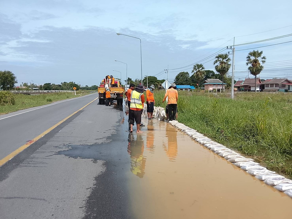 ทั้งนี้ ปัจจุบันโครงข่ายในความรับผิดชอบของ ทช. มีสายทางที่ประสบอุทกภัยใน 10 จังหวัด ได้แก่ กาญจนบุรี กำแพงเพชร ตาก นครปฐม นครสวรรค์ พระนครศรีอยุธยา พิจิตร พิษณุโลก สุโขทัย และอุทัยธานี โดยได้รับผลกระทบ 27 สายทาง แบ่งเป็น สัญจรผ่านได้ 20 สายทาง และไม่สามารถสัญจรผ่านได้ 7 สายทาง โดย ทช. ได้จัดหน่วยลาดตระเวนเพื่อเข้าช่วยเหลือประชาชนอย่างเร่งด่วน อาทิ สำนักงานทางหลวงชนบทที่ 1 (ปทุมธานี) โดยแขวงทางหลวงชนบทพระนครศรีอยุธยา และหมวดบำรุงทางหลวงชนบทเสนา ได้ระดมกำลังเจ้าหน้าที่ดำเนินการบรรจุทราย เพื่อนำกระสอบทรายไปวางกั้นน้ำสองข้างทาง ไม่ให้มวลน้ำไหลเข้าท่วมสายทางเพิ่มเติมบนถนนทางหลวงชนบทสาย อย.4044 แยก ทล.3454 - บ้านเจ้าเจ็ด จังหวัดพระนครศรีอยุธยา และในอีกหลายสายทางที่กำลังประสบอุทกภัย