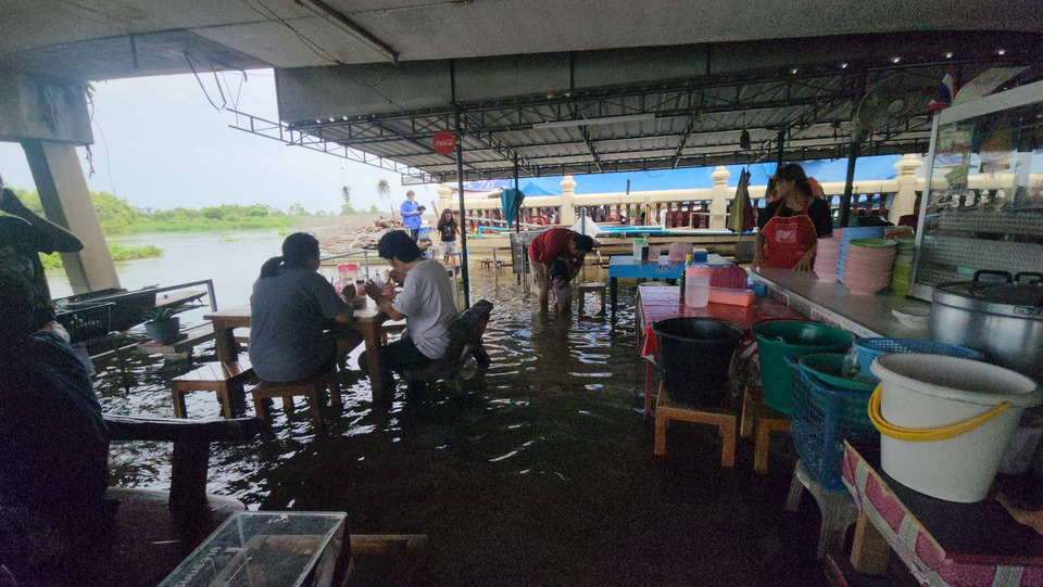 วันที่ 8 พฤศจิกายน 2568 ผู้สื่อข่าวรายงานสถานการณ์มวลน้ำในแม่น้ำท่าจีน จังหวัดนครปฐม โดยพบว่าร้านก๋วยเตี๋ยวไก่ติดริมแม่น้ำท่าจีน ได้เปลี่ยนวิกฤตให้เป็นมิติใหม่แห่งการกินก๋วยเตี๋ยวช่วงน้ำท่วม ร้าน ก๋วยเตี๋ยวไก่ป้าจิต ซึ่งขายก๋วยเตี๋ยวไก่ไทยรสเด็ด ตั้งอยู่บริเวณใต้สะพานลอยหน้า วัดบางพระ หลวงพ่อเปิ่น ใกล้กับองค์การบริหารส่วนตำบลบางแก้วฟ้า อำเภอนครชัยศรี เป็นที่ทราบกันดีว่าในแต่ละปี หากมีน้ำหลากเข้ามาในอำเภอนครชัยศรี ร้านนี้ซึ่งตั้งอยู่ติดริมแม่น้ำท่าจีน จะมีน้ำท่วมหลากเข้ามาภายในร้าน บางปีน้ำท่วมสูงถึงหัวเข่า หรือท่วมสูงจนถึงเก้าอี้ ทำให้ลูกค้าต้องนั่งยองกินก๋วยเตี๋ยวกันเลยทีเดียว
