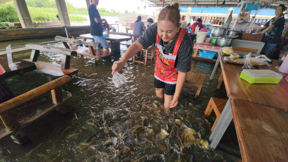 ลูกค้าที่นั่งกินก๋วยเตี๋ยวไก่ไทยอยู่ภายในร้าน เปิดเผยว่า ตนต้องตั้งใจมาทุกปี หากถึงช่วงเวลาน้ำขึ้น เพราะชื่นชอบในบรรยากาศริมน้ำเป็นพิเศษ อีกทั้งยังได้สัมผัสประสบการณ์คล้ายกับได้ทำ สปาเท้า เพราะมีปลาเข้ามาตอดเบา ๆ และยังสามารถพาลูกเล็กมาดูปลาได้อย่างเพลิดเพลิน
