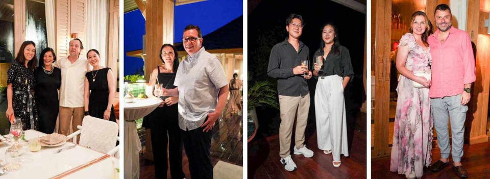 โดยการจัดงานเอ็กซ์คลูซีฟดินเนอร์เป็นไปอย่างเรียบง่ายด้วยใจที่นอบน้อม และปล่อยให้อาหารแต่ละจานบรรเลงรสชาติและทำหน้าที่แสดงเจตนารมณ์ของเชฟผู้ปรุง สายฝนที่โปรยปรายกลับช่วยเติมเต็มความโรแมนติกให้แก่ค่ำคืน เสียงอุทานเบาๆ เมื่อลิ้มรสชาติอาหารที่ถูกปากเหนือความคาดหมาย เคล้ากับเสียงหัวเราะขณะที่ยกจานกับข้าวส่งให้กัน เป็นความประทับใจที่ถูกถ่ายทอดพร้อมแบ่งปันประสบการณ์รสชาติให้แก่กัน อาหารแต่ละจานดูมีชีวิตชีวาเมื่อได้ฟังเชฟนก และ เชฟเดวิด เล่าถึงที่มา เทคนิคการปรุง และวัตถุดิบพิเศษหารับประทานยาก อย่างเป็นกันเอง ท่ามกลางบรรยากาศสวยงามบนจุดสูงสุดของเกาะส่วนตัว โอบล้อมด้วยทะเลสีครามของอ่าวไทยซึ่งเป็นที่ตั้งของ ห้องอาหารล่องใต้ จุดหมายปลายทางที่ได้รับการแนะนำบนคู่มือ มิชลินไกด์ ฉบับประเทศไทย 2024 และ 2025 ห้อมล้อมอบอุ่นด้วยแขกคนสำคัญ อาทิ หฤทยา ไชยนุวัติ, อธิสิทธิ์ ไชยนุวัติ, ทนงศักดิ์ ยอดหวาย และนักท่องเที่ยวจากหลากหลายประเทศ เคล้าคลอไปกับการดื่มด่ำค็อกเทลแก้วพิเศษรังสรรค์มาเฉพาะสำหรับค่ำคืนนี้เท่านั้น ซึ่งมีให้เลือกจิบระหว่างสองเมนูด้วยกัน ได้แก่ ซ่อนกลิ่น ที่มอบความสดชื่นผสมผสานกับรสชาติของสมุนไพรไทยอย่างตะไคร้ได้เป็นอย่างดี และอีกแก้ว Spicy Paloma ที่มีรสชาติอันเป็นเอกลักษณ์ของส้มโอและสอดแทรกความเผ็ดร้อนเบา ๆ ไว้อย่างลงตัว เป็นการเริ่มเปิดต่อมรับรสชาติสุดประทับใจก่อนจะเดินทางเข้าสู่มื้ออาหารสุดพิเศษของเชฟทั้งสอง