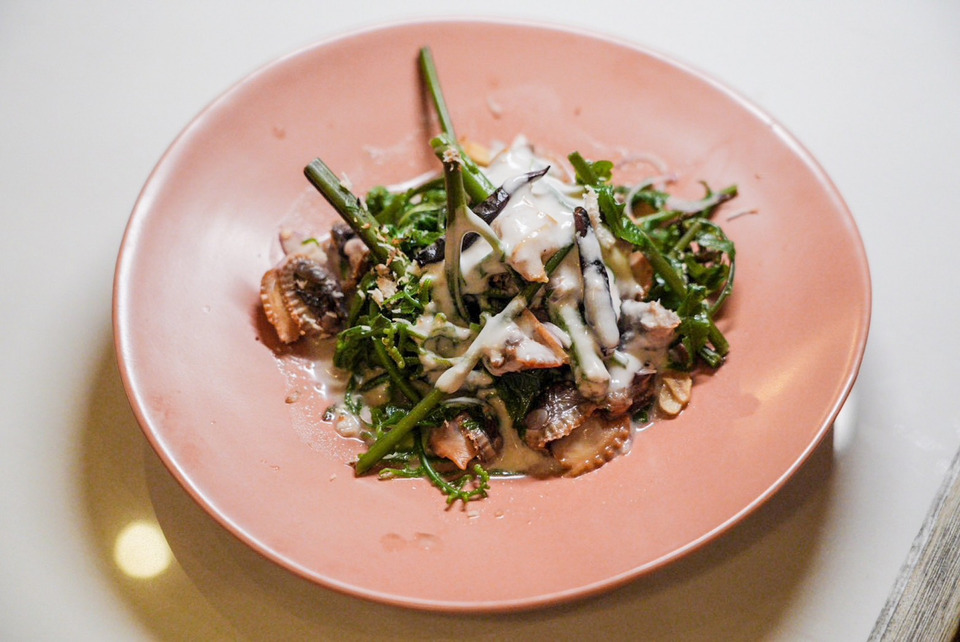 และสุดท้ายคือ ยำผักกูดหอยแครง ที่เติมเต็มความสดชื่นให้กับอาหารมื้อนี้ด้วยหอยแครงสดรสหวานฉ่ำ ผสานความกรอบของผักกูด คลุกเคล้ากับน้ำยำที่ปรุงมาอย่างครบรส