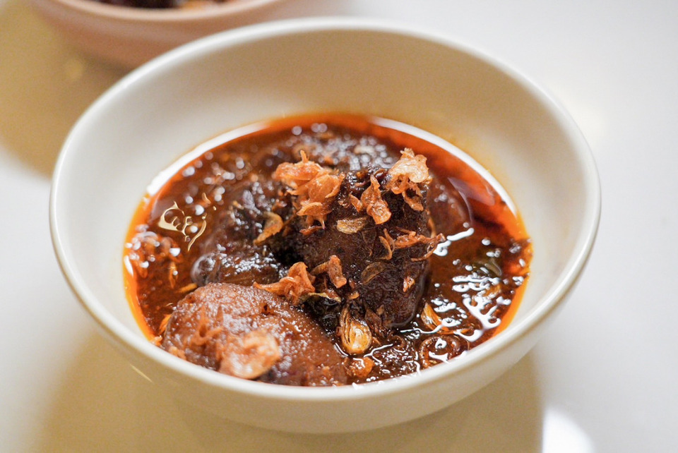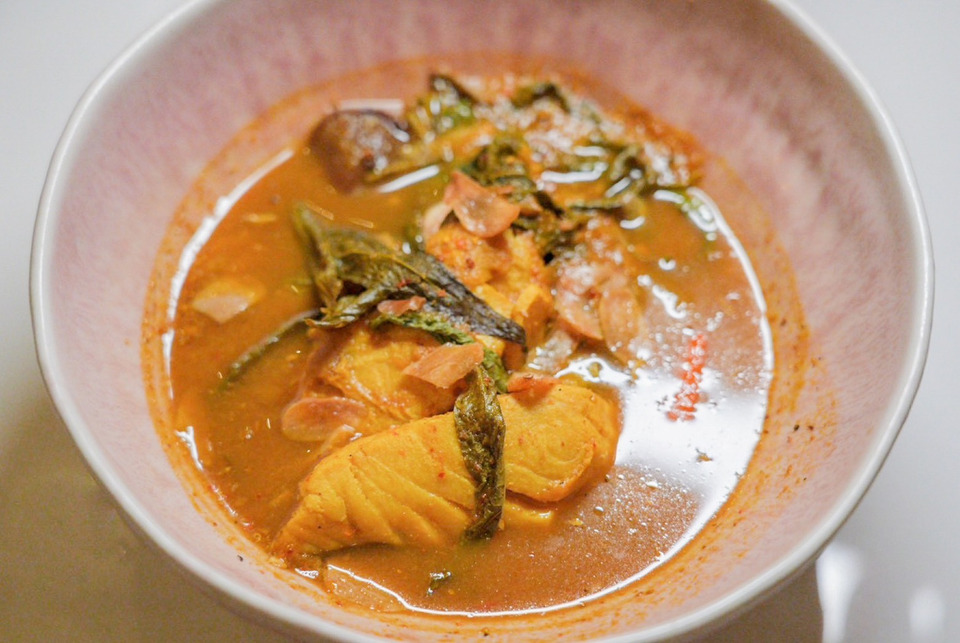 แกงเหลืองปลาอินทรี เป็นหนึ่งในเมนูที่มอบรสชาติเผ็ดร้อนแบบอาหารใต้แท้ ๆ พร้อมกับเนื้อปลาอินทรีเนื้อแน่น สดหวาน โดยชามนี้เชฟเดวิด ได้เลือกที่จะใส่ผักแพวลงไปด้วยจนออกมาเป็นแกงเหลืองที่มีกลิ่นและรสชาติหอมเป็นเอกลักษณ์ ความกลมกล่อมและรสสัมผัสของแกงเหลืองเหมือนอยู่ภายใต้การควบคุมของเชฟเดวิด ที่พร้อมร่ายมนต์ให้แต่ละรสชาติค่อย ๆ ปรากฏขึ้นตามลำดับ เหมือนวงออร์เคสตราภายใต้การกำกับของวาทยากร
