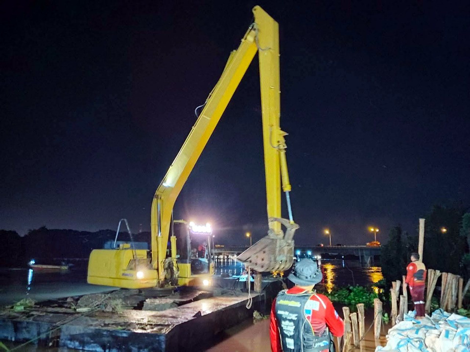เจ้าหน้าที่-ทหาร-กู้ภัย เร่งอุดรอยรั่วพนังเจ้าพระยาที่ป่าโมก อ่างทอง เสร็จจุดแรกสำเร็จ ขณะกรมชลฯ เตรียมเพิ่มระบายน้ำท้ายเขื่อนคืนนี้เป็น 2,750 ลบ.ม./วินาที