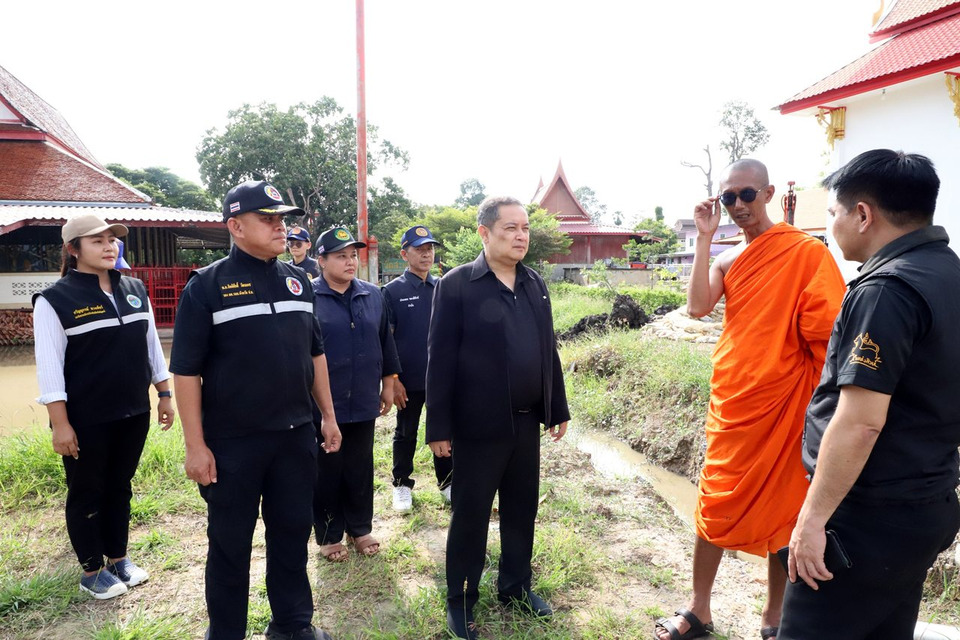 วันที่ 8 พ.ย.68 เวลา 15.00 น. นายเอกวิทย์ มีเพียร ผู้ว่าราชการจังหวัดปทุมธานี พร้อมด้วยพ.อ.กิตติศักดิ์ วัฒนเดช รอง ผอ.รมน.จังหวัด ปทุมธานี นายดงพล รุจิธรรมธัช ปลัดจังหวัดปทุมธานี นางสาวสุพีพร โมรา หัวหน้าสำนักงานป้องกันและบรรเทาสาธารณภัยจังหวัดปทุมธานี นายศรัณย์ เกตุทอง นายอำเภอสามโคก นางสาวกรรณิการ์ นาคอินทร์ นายกเทศมนตรีตำบลสามโคก และหน่วยงานที่เกี่ยวข้องร่วมลงพื้นที่ติดตามสถานการณ์น้ำ การเสริมคันกั้นน้ำ บริเวณพื้นที่วัดสะแก หมู่ 2 ตำบลสามโคก อำเภอสามโคก พร้อมพบปะพูดคุยให้กำลังใจและมอบถุงยังชีพให้แก่ผู้ป่วยติดเตียง กลุ่มเปราะบาง ที่อยู่ในพื้นที่ได้รับผลกระทบ