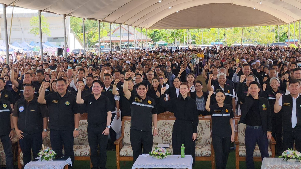 วันที่ 9 พ.ย.2568 ที่ลานคนเดินสนามกีฬามหาราช เทศบาลเมืองสุไหงโก-ลก จังหวัดนราธิวาส ร.อ.ธรรมนัส พรหมเผ่า รองนายกรัฐมนตรี และรัฐมนตรีว่าการกระทรวงเกษตรและสหกรณ์ นำคณะรัฐมนตรีชุดใหญ่จากพรรคกล้าธรรมลงพื้นที่ ประกอบด้วย ศ.ดร.นฤมล ภิญโญสินวัฒน์ รมว.ศึกษาธิการ, นายอัครา พรหมเผ่า รมว.พม., นายอรรถกร ศิริลัทธยากร รมว.ท่องเที่ยวและกีฬา และนายอามินทร์ มะยูโซ๊ะ รมช.เกษตรและสหกรณ์ โดยมี นายสัมพันธ์ มะยูโซ๊ะ ส.ส.นราธิวาส พรรคกล้าธรรม และนางสาลีฮะ มะยูโซ๊ะ นายกเทศมนตรีเมืองสุไหงโก-ลก ให้การต้อนรับอย่างอบอุ่น ท่ามกลางประชาชนกว่า 1,000 คน มารอต้อนรับแน่นลานสนามกีฬา