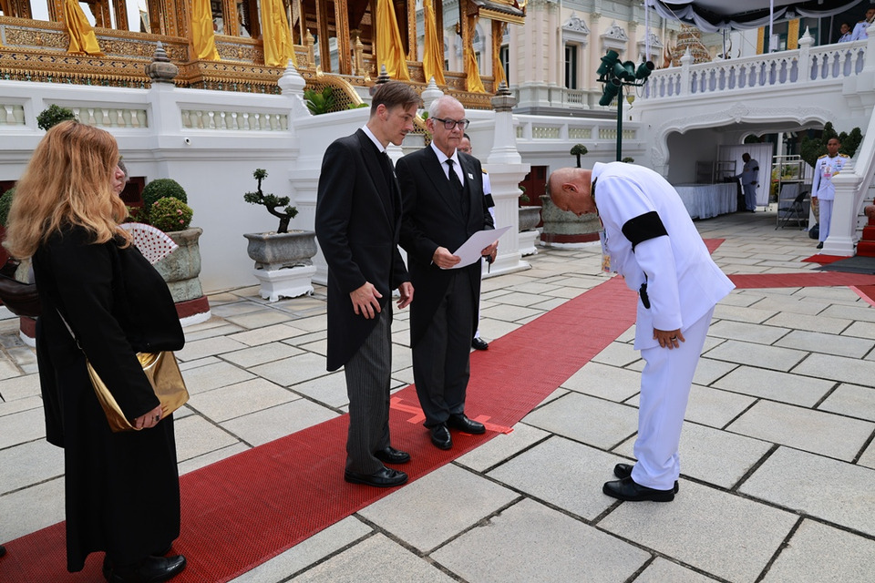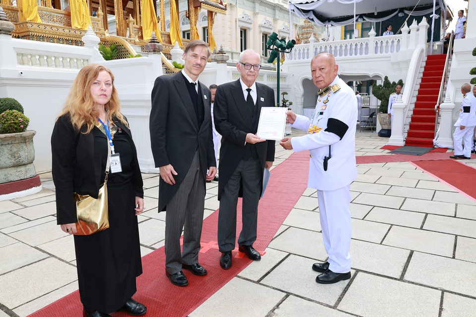วันที่ 9 พ.ย.68 เวลา11.55 น. คณะสถานเอกอัครราชทูตออสเตรีย ถวายความอาลัยพระบรมศพสมเด็จพระนางเจ้าสิริกิติ์ พระบรมราชินีนาถ พระบรมราชชนนีพันปีหลวง ณ พระที่นั่งดุสิตมหาปราสาท พระบรมมหาราชวัง