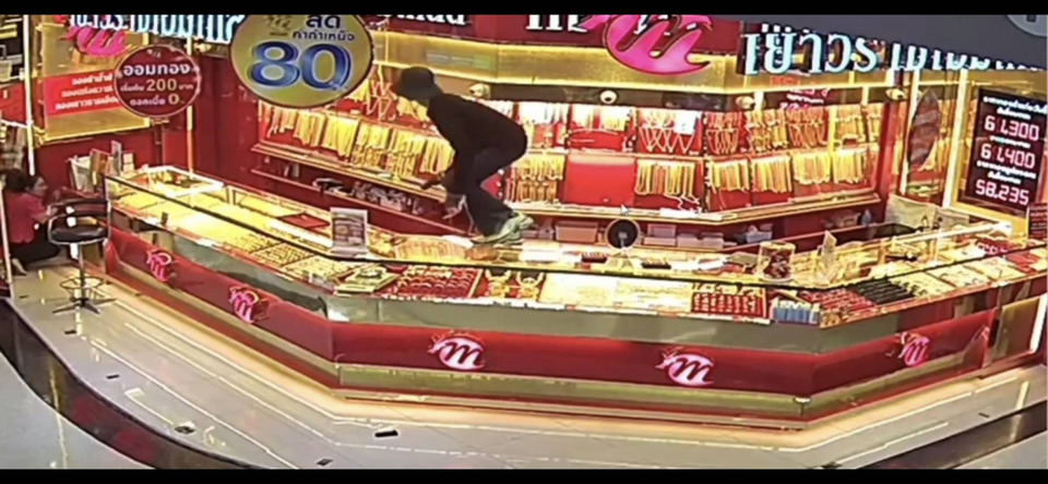 จากการสอบถามพนักงานขายของห้างทอง เล่าว่า ตอนเกิดเหตุมีพนักงานอยู่หน้าเคาน์เตอร์ทั้งหมด 5 คน คนร้ายใส่หมวกและปิดบังใบหน้าเดินเข้ามาใช้อาวุธปืนขู่พนักงาน แล้วก็กระโดดข้ามเคาน์เตอร์ไปทุบกระจกคว้าสร้อยคอทองคำไปจำนวนหนึ่ง น้ำหนักรวมกันราวๆ 55 บาท หรือประมาณ 3,377,000 บาท ซึ่งพนักงานทุกคนตกใจเป็นอย่างมาก เพราะไม่คาดคิดว่าจะเกิดเหตุการณ์เช่นนี้ และรีบแจ้งไปยังศูนย์ 191 และ กดปุ่มฉุกเฉินทันที