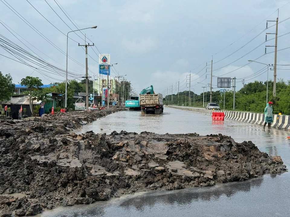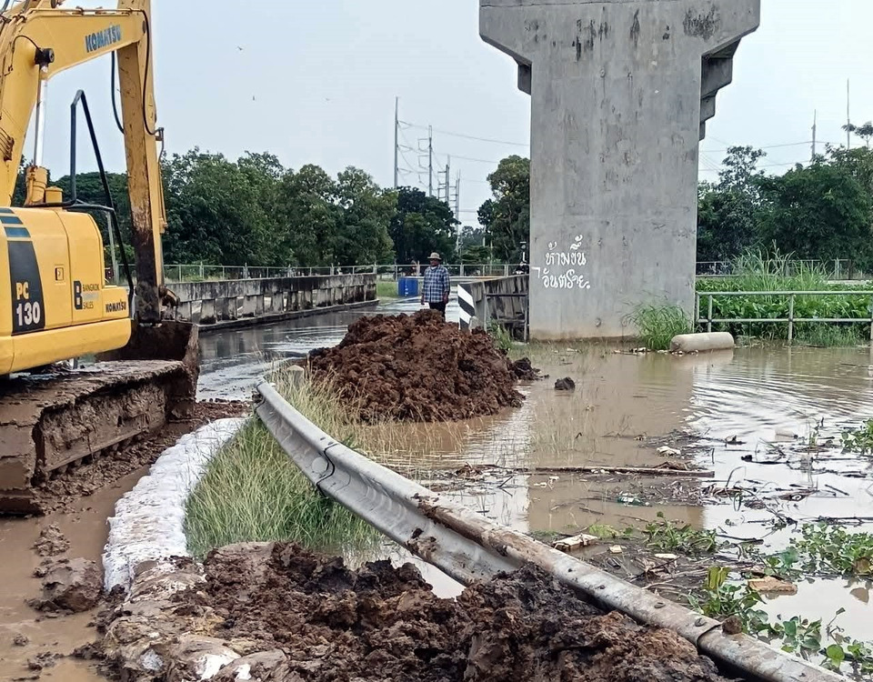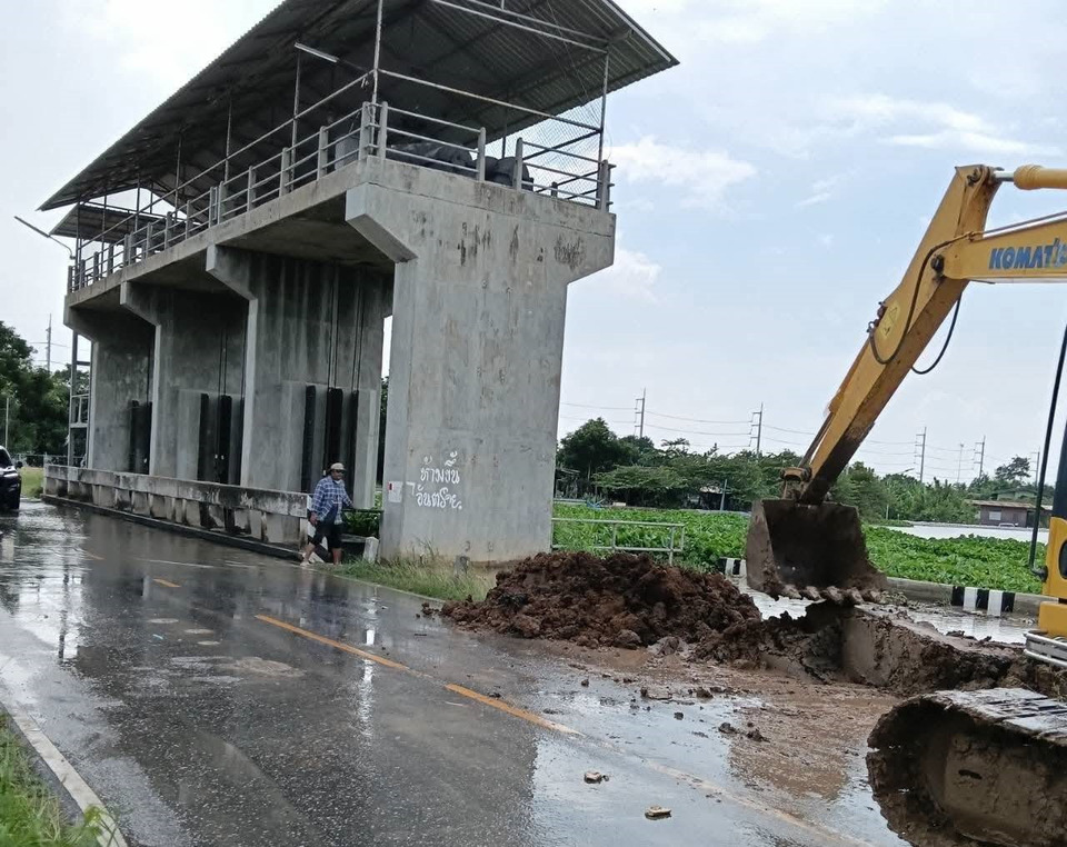 อบต.บ้านอิฐ จ.อ่างทอง แจ้งหลีกเลี่ยงเส้นทางข้ามประตูระบายน้ำบางแก้ว หลังน้ำคลองล้นถนนจากน้ำเจ้าพระยา เร่งระบายน้ำป้องกันความเสียหาย