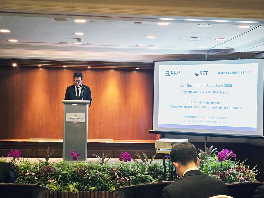 วันที่ 10 พฤศจิกายน 2568 นายอนุทิน ชาญวีรกูล นายกรัฐมนตรีและรัฐมนตรีว่าการกระทรวงมหาดไทย พร้อมด้วย นายเอกนิติ นิติทัณฑ์ประภาศ รองนายกรัฐมนตรีและรัฐมนตรีว่าการกระทรวงการคลัง และคณะ ประกอบด้วย นายสีหศักดิ์ พวงเกตุแก้ว รัฐมนตรีว่าการกระทรวงการต่างประเทศ และ นางศุภจี สุธรรมพันธุ์ รัฐมนตรีว่าการกระทรวงพาณิชย์ เข้าร่วมงาน “SET Government Roadshow 2025” จัดขึ้นโดยตลาดหลักทรัพย์แห่งประเทศไทย (SET) ร่วมกับบริษัทหลักทรัพย์เกียรตินาคินภัทร จำกัด (มหาชน) และ Bank of America ณ โรงแรม InterContinental Singapore เมื่อวันที่ 7 พ.ย. 68 เพื่อพบปะและแลกเปลี่ยนมุมมองกับนักลงทุนสถาบันชั้นนำระดับโลกกว่า 50 แห่ง