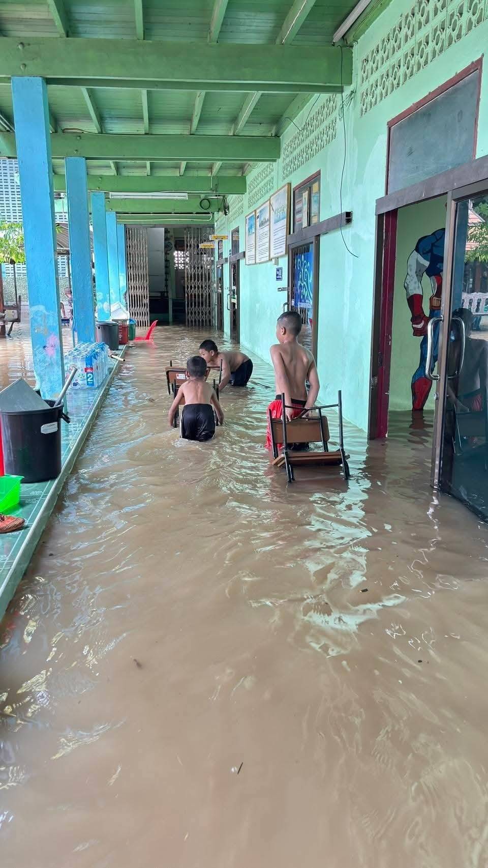 นางสาววรรณวิภา ผอ.โรงเรียน กล่าวว่า โรงเรียนเพิ่งเปิดภาคเรียนที่สองเมื่อวันที่ 3 พ.ย. แต่เรียนได้เพียง 3 วันก่อนน้ำท่วมสูง ทางโรงเรียนจึงมอบหมายงานและสอนออนไลน์ผ่านไลน์กรุ๊ปของผู้ปกครอง เพื่อให้นักเรียนเรียนหนังสือได้ตามปกติ โดยมีผู้ปกครองกำกับดูแลให้งานหรือการบ้านเสร็จตามกำหนด นอกจากนี้ ทางโรงเรียนได้เตรียมแผนสำรอง หากน้ำลดแต่ชุมชนยังท่วม ก็อาจต้องเรียนออนไลน์ต่อไปจนกว่าสถานการณ์จะกลับสู่ปกติ