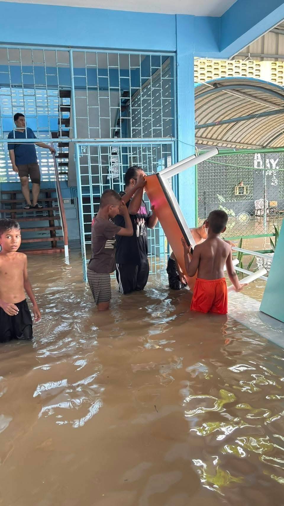 ทางโรงเรียนยังคงให้ครูลงคลิปการสอนออนไลน์ และมอบใบงานหรือการบ้านให้นักเรียน เพื่อให้การเรียนไม่สะดุด แม้ว่าบางอุปกรณ์การเรียน เช่น โต๊ะเก้าอี้ไม้และตู้เก็บของ จะเสียหายจากน้ำท่วม ซึ่งโรงเรียนกำลังสำรวจและจัดทำความสะอาดพื้นที่ห้องเรียนอย่างต่อเนื่อง