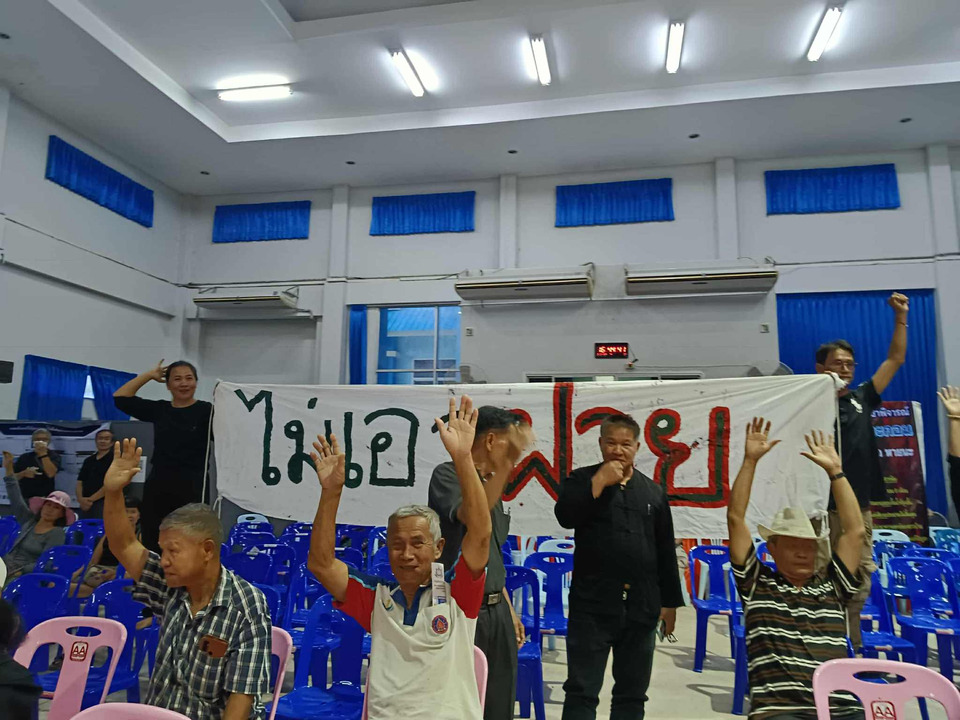 ผู้สื่อข่าวรายงานว่า ชาวบ้านได้ลุกขึ้นโต้แย้งว่าการลงประชาชามติครั้งนี้ไม่ใช่ว่าทุกคนจะใช้คิวอาร์โค๊ตได้ และมีชาวบ้านอีกจำนวนมากที่ต้องการแสดงความเห็นคัดค้านควรทำอย่างไร ซึ่งทางผู้จัดแจ้งว่าขอให้ผู้ที่อยู่ในห้องประชุมเป็นตัวแทนของชาวแม่อาย ในที่สุดนายก อบต.ท่าตอนจึงขอใช้วิธีลงมติโดยการยกมือ ปรากฏว่าชาวบ้านที่เหลือในห้องประชุมทั้งหมดยกมือไม่เอาฝายดักตะกอน และเมื่อถามว่ามีใครเอาฝายบ้าง ปรากฏว่าไม่มีใครยกมือ ดังนั้นในที่ประชุมจึงมีมติเป็นเอกฉันท์ว่าชาวท่าตอนไม่เอาฝากดักตะกอน ก่อนที่จะปิดประชุม