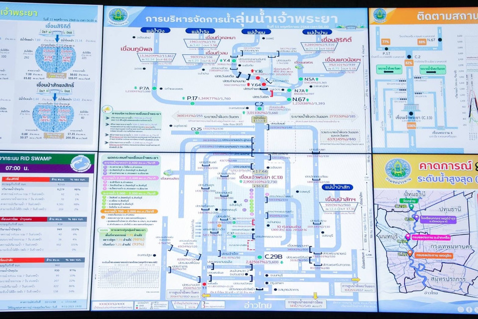 “ปริมาณน้ำในลุ่มเจ้าพระยาตอนนี้ถือว่าสูง เราจึงจำเป็นต้องระบายน้ำออกทั้งฝั่งซ้ายและขวา เพื่อไม่ให้เกิดการล้นตลิ่ง โดยกรมชลประทานระบายน้ำทั้ง 2 ด้านรวมกัน 637 ลูกบาศก์เมตรต่อวินาที เพื่อให้สมดุลกับน้ำที่ไหลลงมา และควบคุมระดับน้ำในเขื่อนเจ้าพระยาให้อยู่ในเกณฑ์ปลอดภัย” รองนายกรัฐมนตรี กล่าว