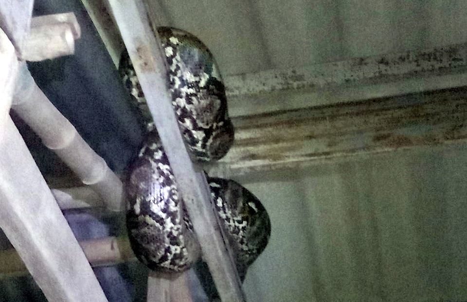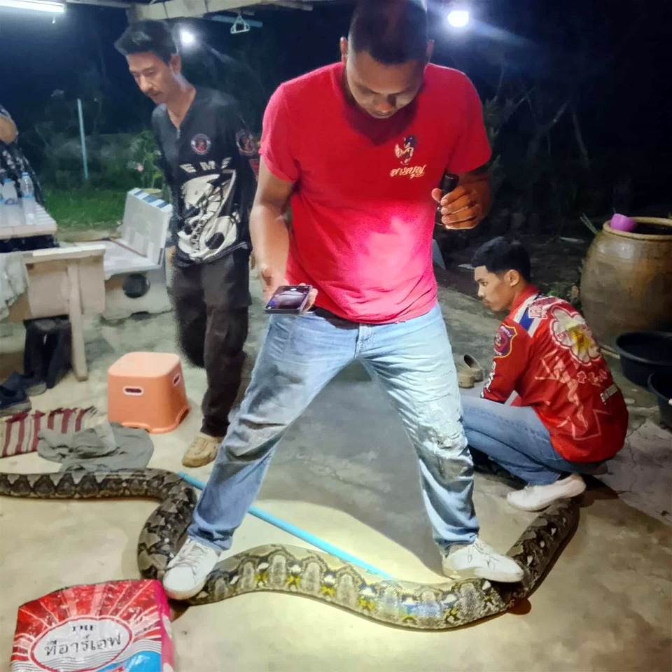 เจ้าหน้าที่มูลนิธิสุขศาลานุเคราะห์นครปฐมจับงูเหลือมยาวกว่า 4 เมตร หนัก 50 กิโลกรัม ภายในบ้านพัก คาดหนีน้ำท่วมจากฝนตกต่อเนื่อง เตือนประชาชนอย่าจับเอง