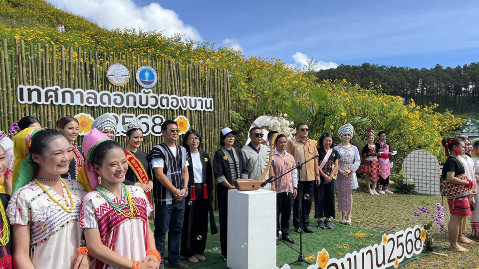 เมื่อวันที่ 11 พฤศจิกายน 2568 เวลา 10.00 น. ณ วนอุทยานทุ่งบัวตอง บริเวณศาลาแปดเหลี่ยม คอยแม่อูคอ หมู่ที่ 6ตำบลแม่ดูคอ อำเภอขุนยวม จังหวัดแม่ฮ่องสอน น นางสาวชุติพร เสชัง ผู้ว่าราชการจังหวัดแม่ฮ่องสอน เป็นประธานในพิธีเปิดเทศกาลท่องเที่ยวดอกบัวตองบาน บนดอยแม่ดูคอ ประจำปี 2568 โดยปลัดอาวุโส รักษาราชการแทนนายอำเภอขุนยวม กล่าวต้อนรับ และนางสาวริชญา ชะอุ่ม ท่องเที่ยวและกีฬาจังหวัดแม่ฮ่องสอน กล่าวรายงาน