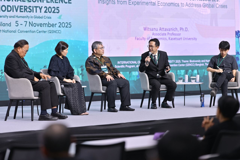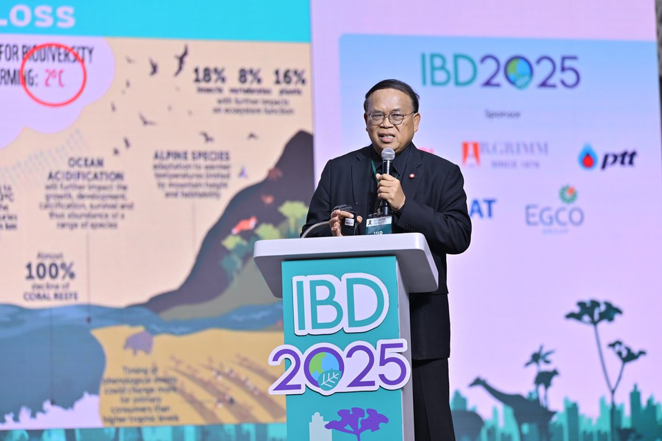 จากเวทีการเสวนาเชิงวิชาการ เรื่อง การบริหารจัดการความหลากหลายทางชีวภาพเพื่อก้าวข้ามยุควิกฤตโลก ในการประชุมวิชาการนานาชาติ International Conference on Biodiversity 2025 (IBD 2025) เซึ่ง มหาวิทยาลัยเกษตรศาสตร์ ร่วมกับ สำนักงานวิจัยแห่งชาติ เป็นเจ้าภาพหลักในการจัดงาน ภายใต้แนวคิดหลัก “ความหลากหลายทางชีวภาพกับมนุษยชาติในยุควิกฤตโลก” (Biodiversity and Humanity in Global Crisis ) โดยมีหน่วยงานเกี่ยวข้องด้านความหลากหลายทางชีวภาพของประเทศ ร่วมจัดงาน ได้แก่ สำนักงานพัฒนาวิทยาศาสตร์และเทคโนโลยีแห่งชาติ สำนักงานพัฒนาเศรษฐกิจจากฐานชีวภาพ (องค์การมหาชน) สถาบันเทคโนโลยีจิตรลดา มูลนิธิสวนหลวง ร.9 โดยมีวัตถุประสงค์เพื่อเฉลิมพระเกียรติ สมเด็จพระกนิษฐาธิราชเจ้า กรมสมเด็จพระเทพรัตนราชสุดาฯ สยามบรมราชกุมารี ทรงเจริญพระชนมายุ 70 พรรษา ในปี พ.ศ. 2568 และเป็นเวทีแลกเปลี่ยนเรียนรู้ระหว่างประชาคมนักวิจัยของไทยและต่างประเทศ ณ ศูนย์การประชุมแห่งชาติสิริกิติ์ กรุงเทพฯ
