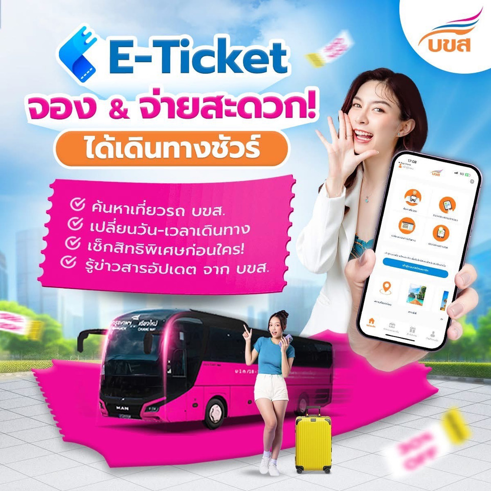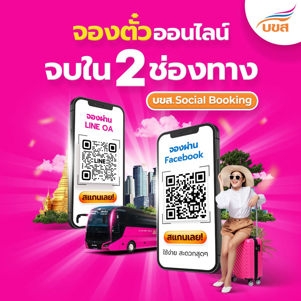 บขส. จึงขอเชิญชวนประชาชนจองตั๋วล่วงหน้า ได้ที่ เว็บไซต์ บขส. https://tcl99web.transport.co.th, Application E – ticket, Facebook Page : บขส. (www.facebook.com/BorKorSor99), Line : บขส.99 (Id : @TCL99) และช่องจำหน่ายตั๋วโดยสาร บขส. ทั่วประเทศ หรือ โทร. 0 – 2936 – 3660