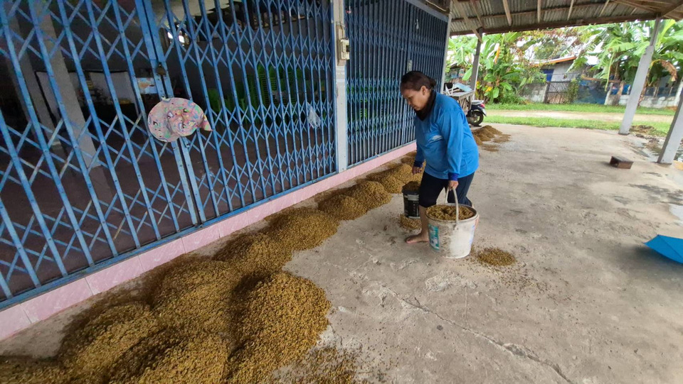 นางยุภารัตน์ พิมพ์โพธิ์ อายุ 51 ปี เล่าด้วยความเจ็บปวดว่า "เมื่อเช้าฝนตกแรงมาก รีบออกมาดูข้าวเปลือกที่ตากเอาไว้ ได้แต่มองข้าวไหลไปกับสายน้ำบางส่วน" ตนเองทำนา 6 ไร่ เพิ่งเกี่ยวข้าวเหนียวเสร็จได้เพียง 1 วัน ได้ผลผลิตกว่า 5 ตัน แต่ฝนที่ตกมาอย่างหนักวันนี้ทำให้ข้าวเปลือกไหลลงป่าอ้อยและท่อระบายน้ำไปประมาณ 1 ตัน ข้าวที่ถูกฝนแบบนี้จะไม่ได้คุณภาพดี (ข้าวมู่) ทำให้ทุกข์ใจอย่างมาก