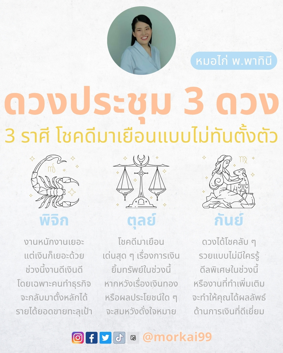 วันที่ 13 พ.ย.68 "หมอไก่" นักพยากรณ์ชื่อดัง โพสต์ข้อความผ่านอินสตาแกรม @morkai99 ระบุว่า...