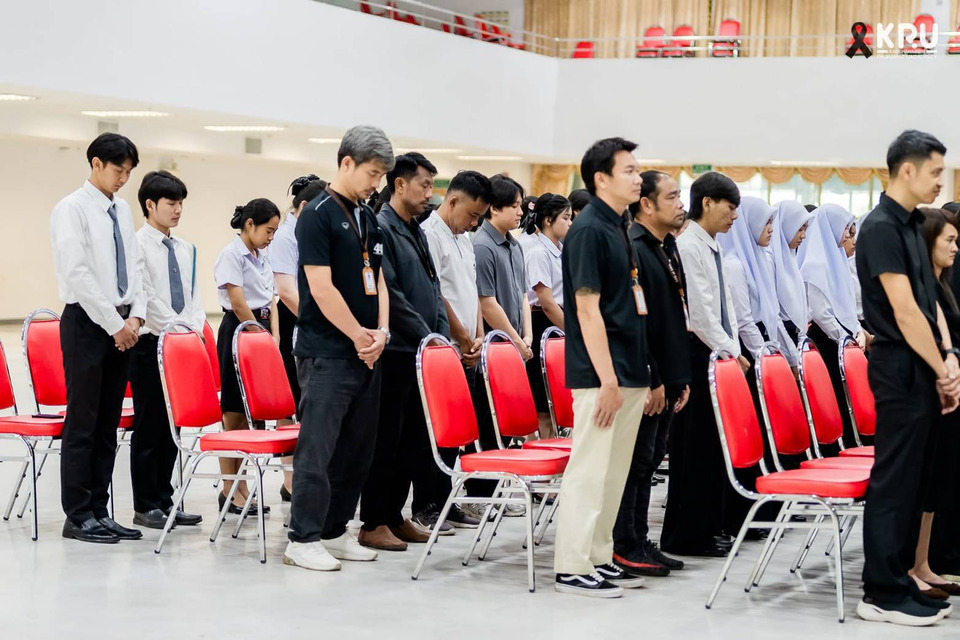 เมื่อวันที่ 12 พ.ย.68เวลา 13.00 น.ที่หอประชุมอาคารเรียนรวมและอเนกประสงค์ มหาวิทยาลัยราชภัฏกาญจนบุรี ได้จัดพิธีน้อมรำลึกในพระมหากรุณาธิคุณและถวายความอาลัยแด่ สมเด็จพระนางเจ้าสิริกิติ์ พระบรมราชินีนาถ พระบรมราชชนนีพันปีหลวง โดยมี ผู้ช่วยศาสตราจารย์ ดร.พจนีย์ สุขชาวนา อธิการบดีมหาวิทยาลัยราชภัฏกาญจนบุรี เป็นประธานในพิธี นำคณะผู้บริหาร คณาจารย์ บุคลากร นักเรียน และนักศึกษา เข้าร่วมอย่างพร้อมเพรียง เพื่อแสดงความจงรักภักดีและร่วมน้อมรำลึกในพระมหากรุณาธิคุณอันหาที่สุดมิได้ของพระองค์ท่าน