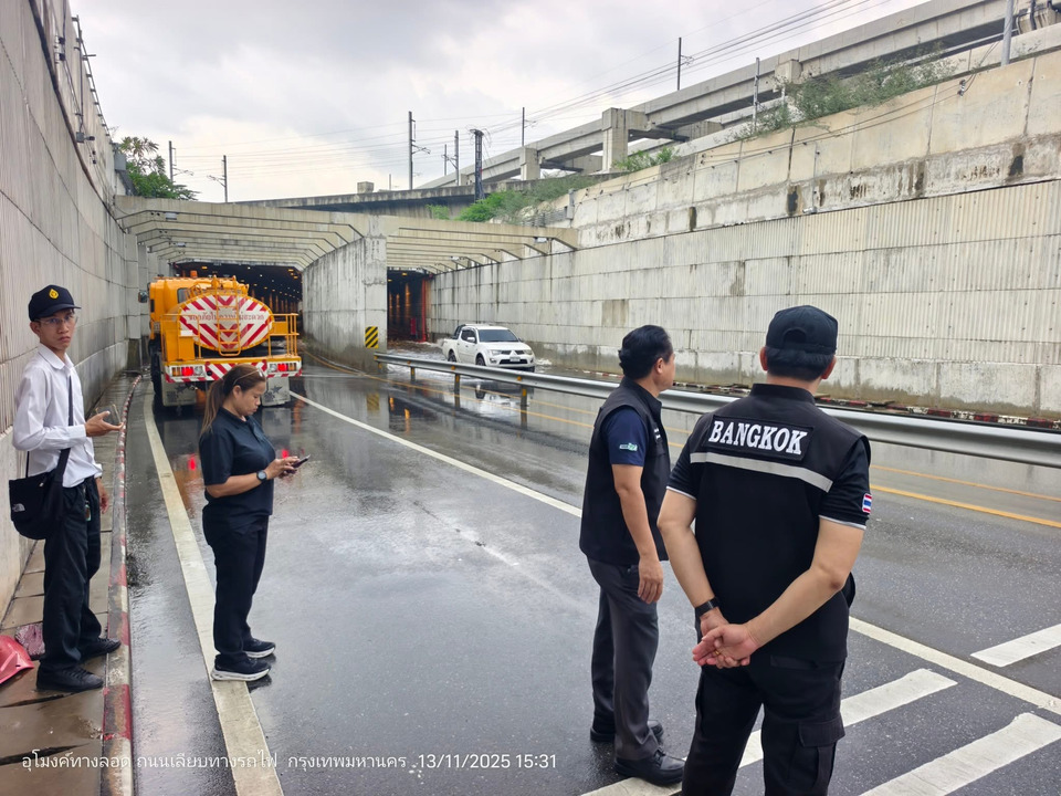 ทั้งนี้ ได้รับการสนับสนุนรถสูบน้ำจาก สำนักการระบายน้ำ เข้ามาช่วยเร่งระบายน้ำออกจากพื้นที่ เพื่อบรรเทาปัญหาในเบื้องต้น ขอความร่วมมือประชาชน งดใช้เส้นทางอุโมงค์ดังกล่าว ทั้งรถยนต์ขนาดเล็กและรถจักรยานยนต์ จนกว่าสถานการณ์จะกลับเข้าสู่ภาวะปกติ