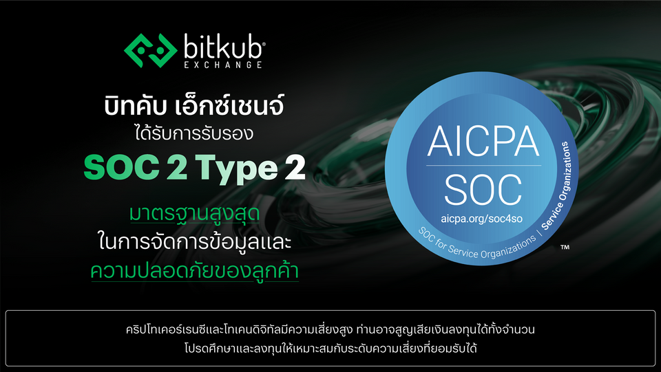 อ้างอิง: บิทคับ เอ็กซ์เชนจ์ ได้การรับรองมาตรฐาน SOC 2 Type 1 เมื่อ 24 มี.ค. 2568 และ ได้การรับรองมาตรฐาน SOC 2 Type 2 เมื่อ 24 ต.ค. 2568