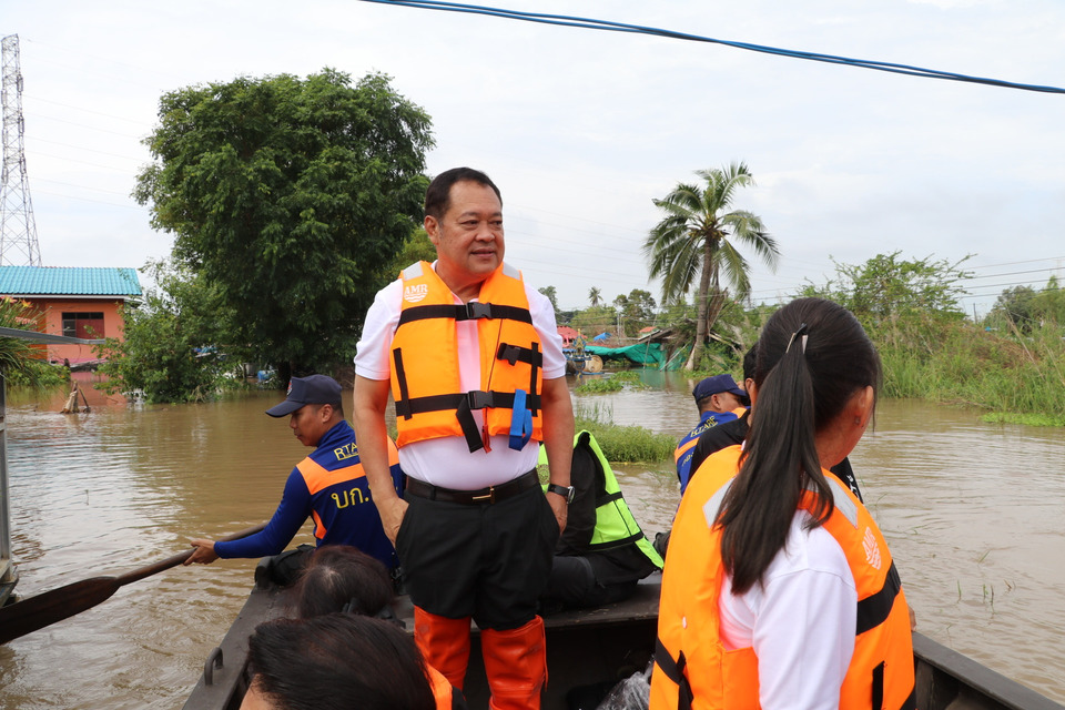 พันตำรวจเอก ทวี สอดส่อง อดีตรัฐมนตรีว่าการกระทรวงยุติธรรม ลงพื้นที่ให้กำลังใจผู้ประสบภัยน้ำท่วมอ่างทอง แนะรัฐต้องเร่งแก้ปัญหา ชี้เป็นบทเรียนซ้ำซาก-ห่วงประชาชนอยู่ลำบากนานกว่า 3 เดือน