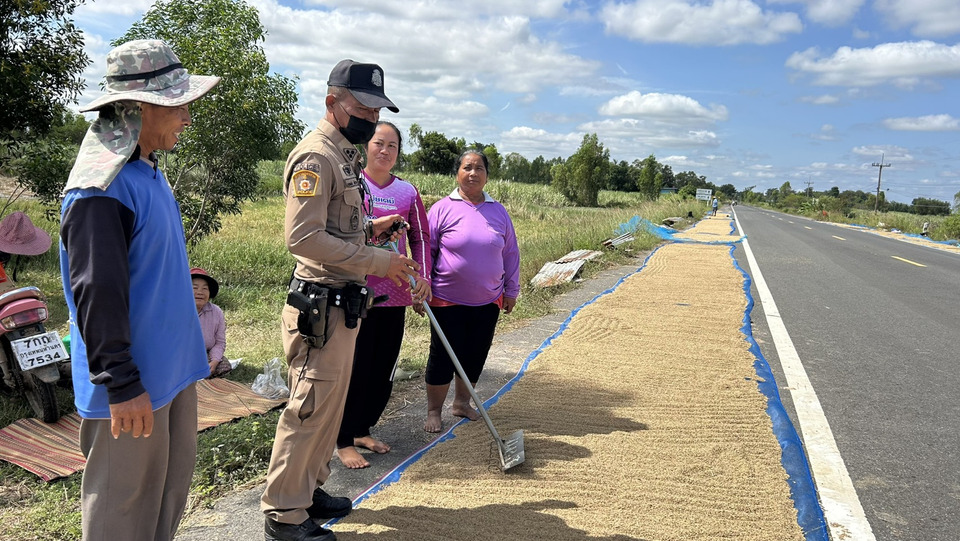 วันที่ 13 พ.ย.68 ผู้สื่อข่าวรายงานว่า ในช่วงฤดูการเก็บเกี่ยวข้าวนาปีของเกษตรกรภาคอีสาน มักจะเกิดปัญหาทุกปีเนื่องจากไม่มีพื้นที่นำข้าวเปลือกที่เกี่ยวสดไปตาก ซึ่งส่วนใหญ่เกษตรกรจะนำไปตากตามถนน สร้างความเดือดร้อนให้กับผู้ใช้รถใช้ถนนเป็นประจำและหลายครั้งเกิดอุบัติแหตุ และหลายครั้งมีคนร้ายแอบไปขโมยข้าวเปลือกของเกษตรกรถึงกลางถนน ซ้ำเติมเกษตรกรเป็นประจำ