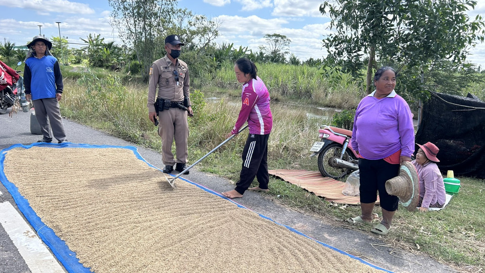 จึงให้ตำรวจจิตอาสา ออกมาช่วยชาวบ้านตากข้าวหลังว่างจากภารกิจราชการ เพราะกลัวว่าชาวบ้านจะตากข้าวไม่ทันก่อนฝนตกในช่วงเย็น สร้างความปลื้มใจให้กับชาวบ้านที่มาร่วมตากข้าวอย่างมาก