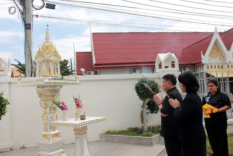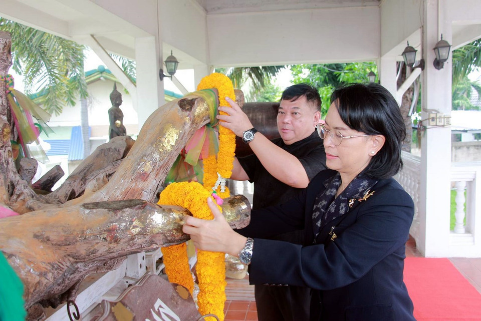 ผู้ว่าราชการจังหวัดอ่างทองและประธานแม่บ้านมหาดไทยจังหวัดอ่างทอง กราบสักการะสิ่งศักดิ์สิทธิ์ประจำจังหวัด เนื่องในโอกาสเข้ารับตำแหน่งผู้ว่าราชการจังหวัดอ่างทอง