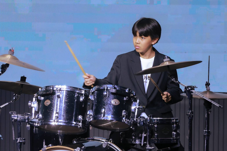 น้อง ธัชชานันท์ จินประดิษฐ์ (ออสติน) และ น้องปวริศ นามวงศ์บุญ (พอช) Duo กลองและกีต้าร์ น้องออสติน(กลอง) อายุ 12 ปี โรงเรียนเตรียมอุดมศึกษาน้อมเกล้า ชั้นม.1 เล่าถึง ที่มาของการเล่น DUOกลองและกีต้าร์ ว่า ครูโรงเรียนดนตรีให้พวกเรามาคู่กัน แล้วชวนคนอื่นมาทำวงดนตรี แข่งที่โรงเรียนเตรียมน้อมฯ เราเลยได้เล่นคู่กันครับ ใครที่อยากเข้ามาในเส้นทางนี้แนะนำว่า หาแรงบันดาลใจก่อน แล้วก็ฝึกเรื่อยๆ ครับ ส่วน น้องพอช(กีต้าร์ไฟฟ้า) อายุ 10 ปี โรงเรียนโชคชัยหทัยราษฎร์ ชั้นป.6 กล่าวว่า ถ้าชอบกีตาร์จริงๆ ก็ฝึกบนเมโทรนอมบ่อยๆ หรือแบบอยากมีแรงบันดาลใจก็ได้