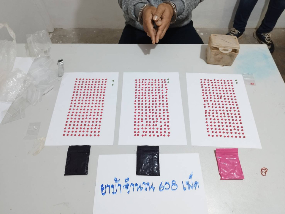 จากการตรวจค้นพบนายพงษ์ศักดิ์ (สงวนนามสกุล) อายุ 28 ปี แสดงตัวเป็นผู้ครอบครองสถานที่หลังดังกล่าว เจ้าหน้าที่จึงได้แสดงหมายค้น พร้อมอ่านข้อความตามหมายค้นให้นายพงษ์ศักดิ์ฟัง ซึ่งจากการตรวจค้นบริเวณบ้านพบยาบ้า สีน้ำเงิน 2 ถุง สีชมพู 1 ถุง บรรจุอยู่ในถุงพลาสติกสีขาว รัดรวมกันด้วยหนังยางอีกชั้นหนึ่งฝังดินอยู่ใต้โต๊ะวางของใช้ใต้หน้าต่างข้างตัวบ้าน ซึ่งนายพงษ์ศักดิ์ รับว่าเป็นยาบ้าของตนจริง นอกจากนี้ยังพบยาบ้าอีก 2 เม็ด ที่โยนทิ้งไว้ รวมยาบ้าทั้งหมด 608 เม็ด จึงตรวจยึดไว้เป็นของกลาง และนำตัวมาสอบสวนที่โรงพัก