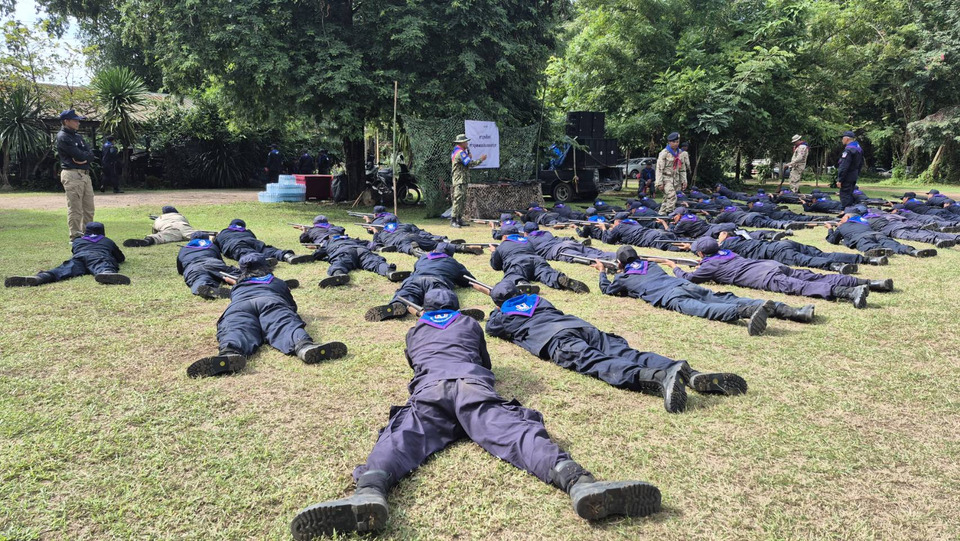 อำเภอบ้านกรวด จ.บุรีรัมย์ ฝึกเข้ม ชรบ. แนวชายแดนกว่า 2,000 นาย ทั้งยุทธวิธีการใช้กระบอง อาวุธปืน ทักษะป้องกันตัว ตามแผนพิทักษ์พื้นที่ส่วนหลัง เพื่อดูแลความเรียบร้อยชีวิตทรัพย์สินชาวบ้านแนวชายแดนให้ปลอดภัย หากเกิดสถานการณ์ฉุกเฉิน